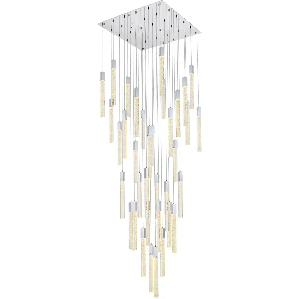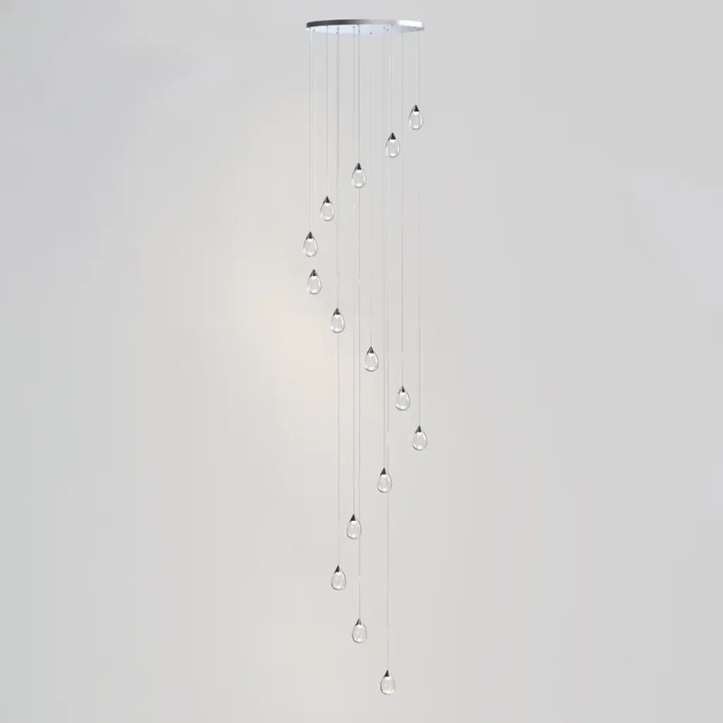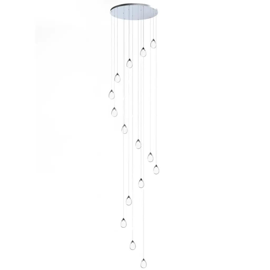 Add a wow-worthy luminary to your entryway or living room with this modern 15-light cluster pendant. The fixture is crafted from steel with a dynamic finish, and it holds 15 separate teardrop shades from slim cords at varying lengths to create a spiral silhouette. Made from spun glass, the shades hold built-in LEDs that give off a warm, ambient glow we know you'll love. A circular canopy is installed to your ceiling, and the lights are all dimmable to move you effortlessly from day to night.