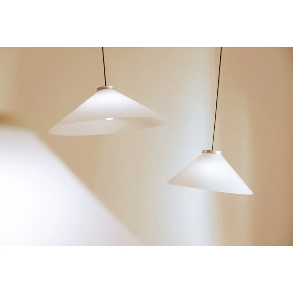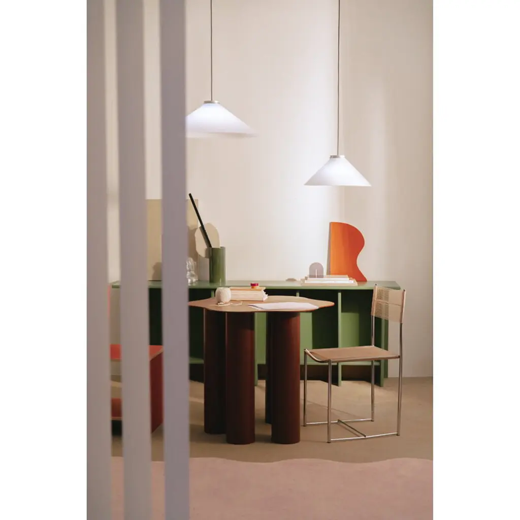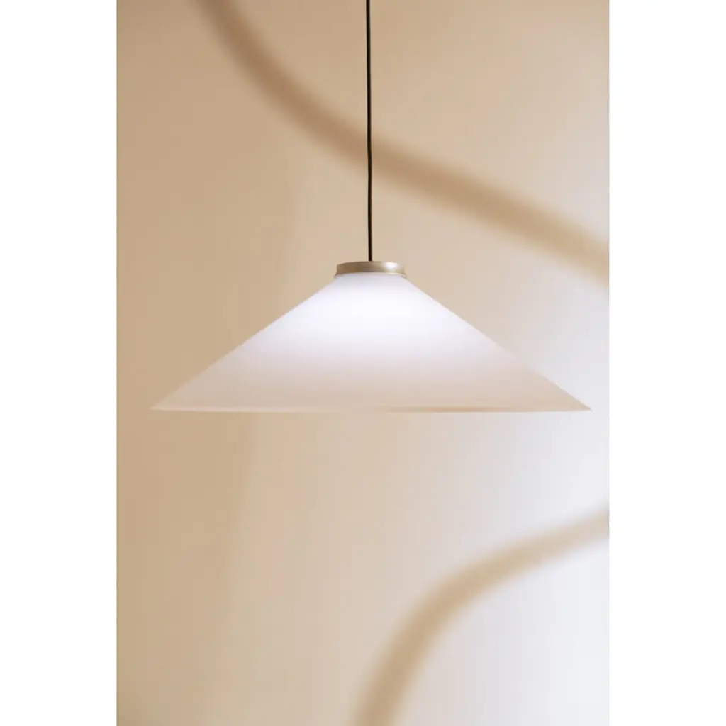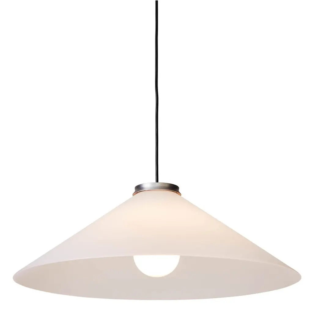 Pholc's Aline pendant light is a testament to the power of timeless, minimalist forms that work year after year after year. Designed in close cooperation with Afteroom, the lamp consists of a classic cone-shaped shade with a simple aluminum ring decorating its top – and that's it! Aline combines strict purity with delicate softness: the geometric shape and minimalist silhouette are counterbalanced by the shade's smooth matte surface and translucent material, through which the light is filtered pleasantly also upwards. The designers opted for high-quality acrylic for the shade, as it is not only light and durable, but also recyclable. Pholc actually hopes that the Aline lamps will be returned to them at the end of their lifecycle so that the materials can be reused and recycled.