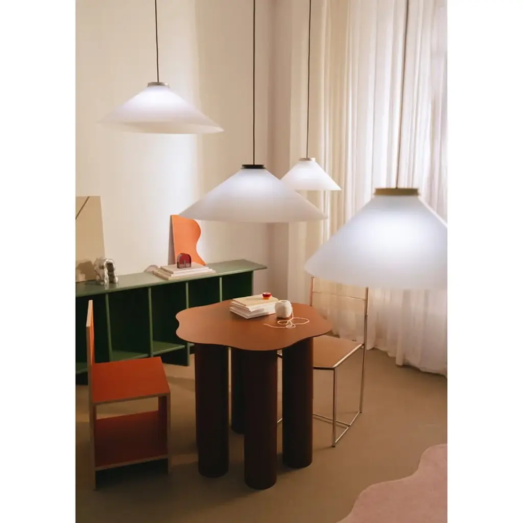 Pholc's Aline pendant light is a testament to the power of timeless, minimalist forms that work year after year after year. Designed in close cooperation with Afteroom, the lamp consists of a classic cone-shaped shade with a simple powder-coated metal ring decorating its top – and that's it! Aline combines strict purity with delicate softness: the geometric shape and minimalist silhouette are counterbalanced by the shade's smooth matte surface and translucent material, through which the light is filtered pleasantly also upwards. The designers opted for high-quality acrylic for the shade, as it is not only light and durable, but also recyclable. Pholc actually hopes that the Aline lamps will be returned to them at the end of their lifecycle so that the materials can be reused and recycled.
