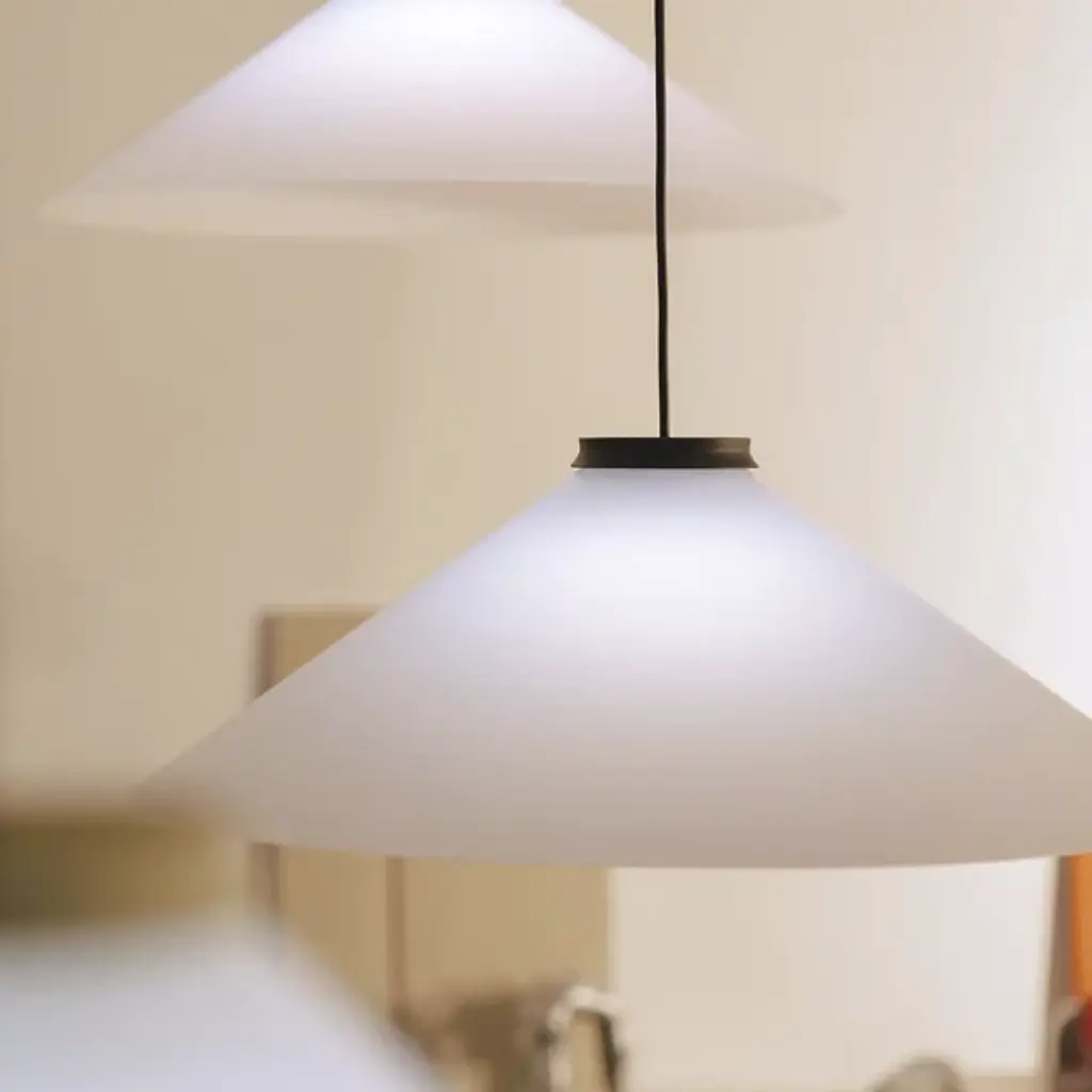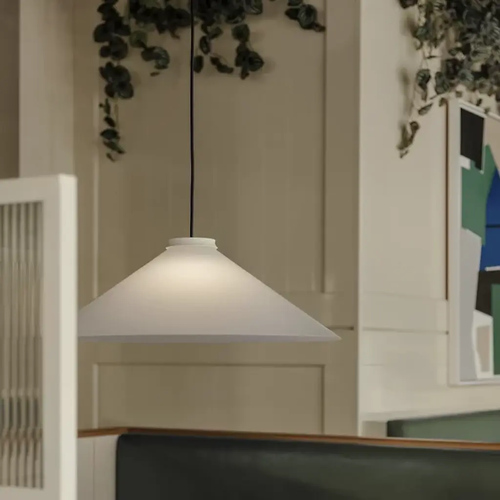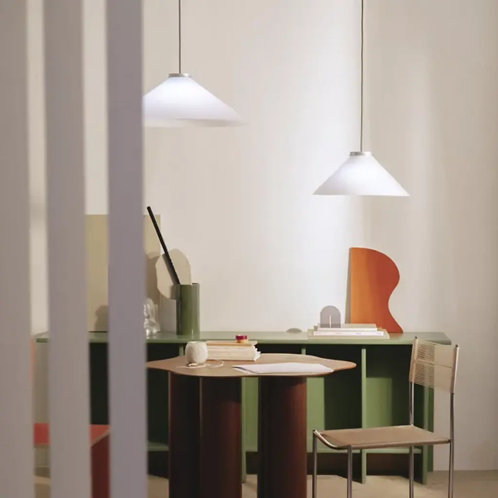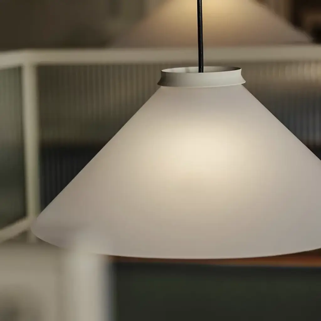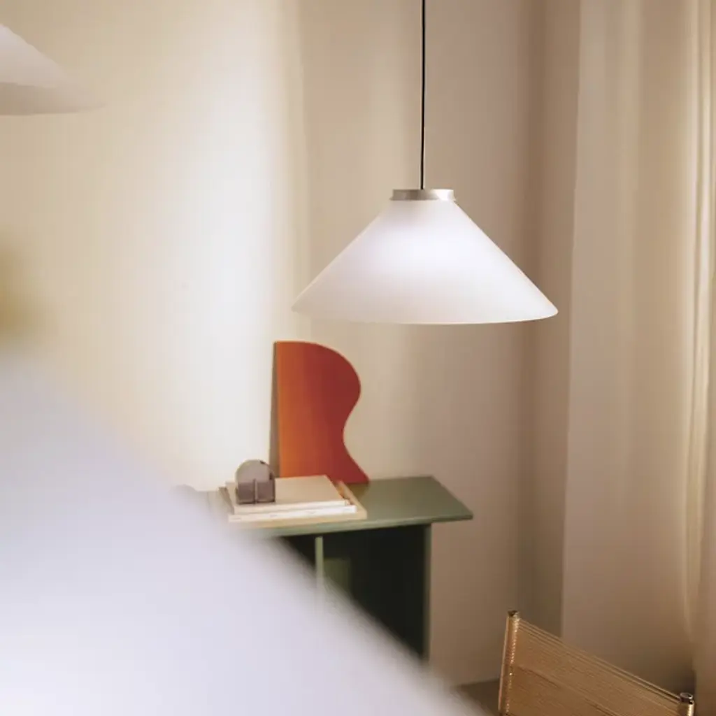 The Aline Pendant from Pholc offers a fresh take on a classic form, balancing minimalism with a gentle visual warmth. Designed by Afteroom, this modern pendant reimagines the classic cone shape with a matte aluminum collar and a translucent acrylic shade. The result is a soft yet structured glow that brings atmosphere without distraction. A powder-coated disc at the top adds a subtle pop of color and material contrast, making the slender fixture a quiet statement piece in any setting, from dining areas to entryways.