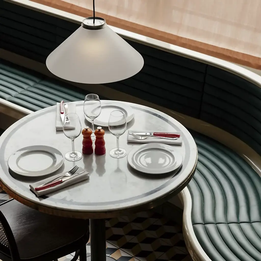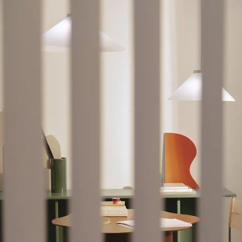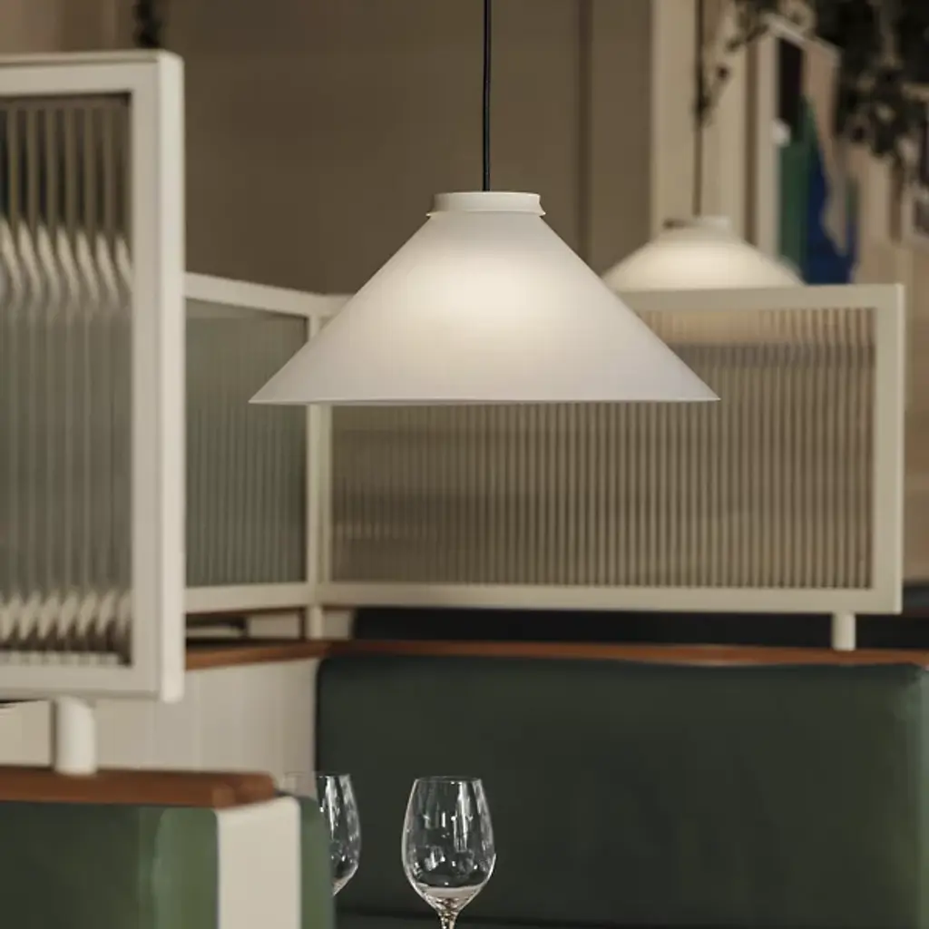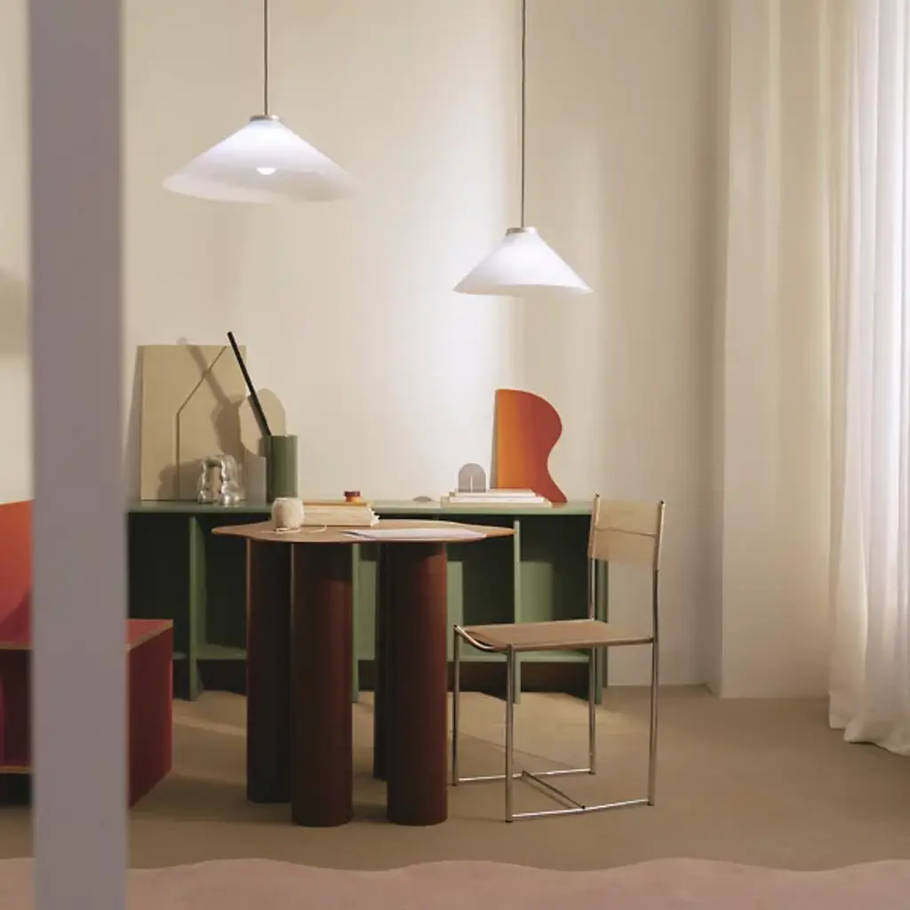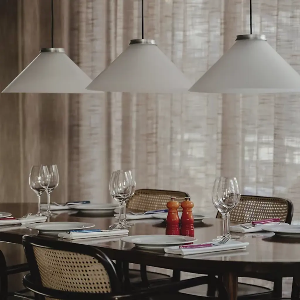 The Aline Pendant from Pholc offers a fresh take on a classic form, balancing minimalism with a gentle visual warmth. Designed by Afteroom, this modern pendant reimagines the classic cone shape with a matte aluminum collar and a translucent acrylic shade. The result is a soft yet structured glow that brings atmosphere without distraction. A powder-coated disc at the top adds a subtle pop of color and material contrast, making the slender fixture a quiet statement piece in any setting, from dining areas to entryways.