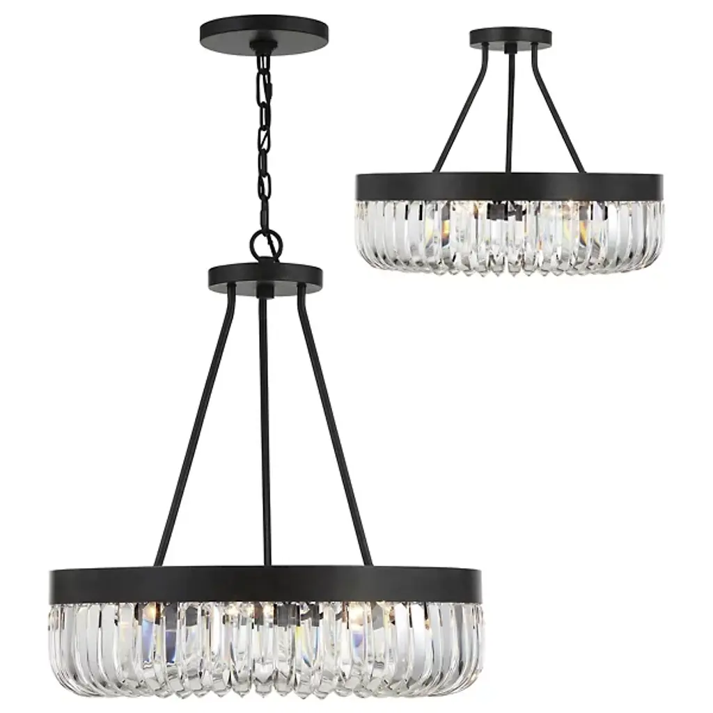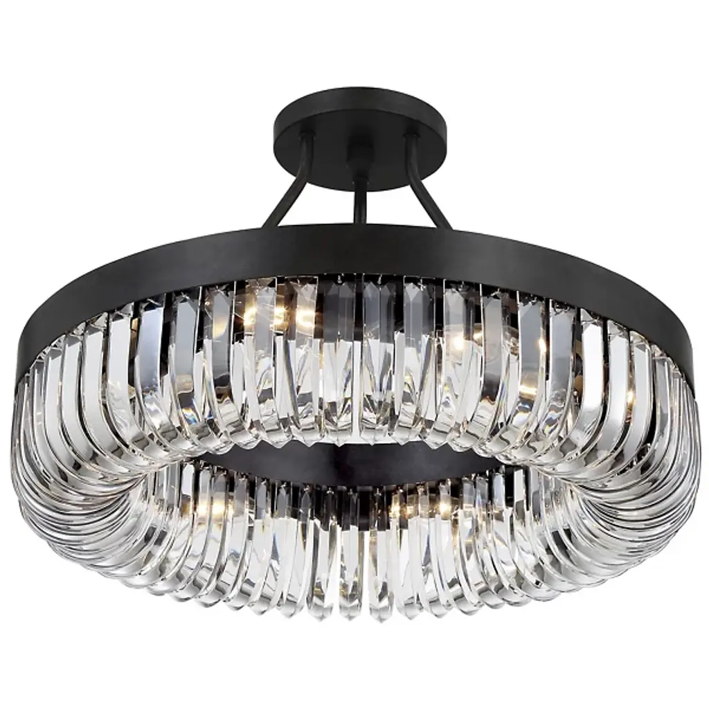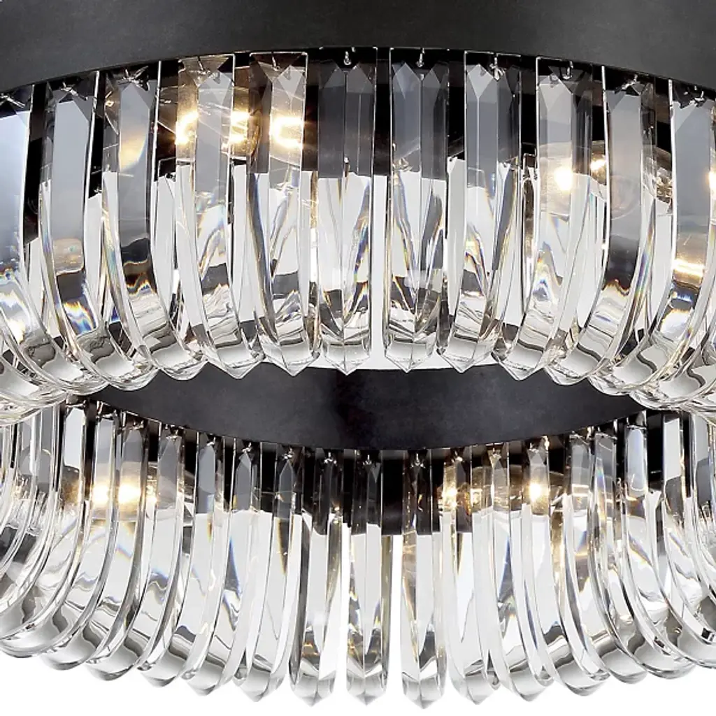 The Alister Semi-Flushmount by Crystorama is a robust and glamorous addition to spaces. Nestled near the ceiling, a set of angled stems and a boldly finished metal body support a beautiful array of faceted, cut crystal pieces with a smooth, U-shaped build. Evenly spaced around this design to create a curved silhouette, these pieces surround light sources to bring the brilliance of crystal to life when illuminated. Bright and beautiful, this elegant and statement-worthy fixture is a stunning way to light up a room.