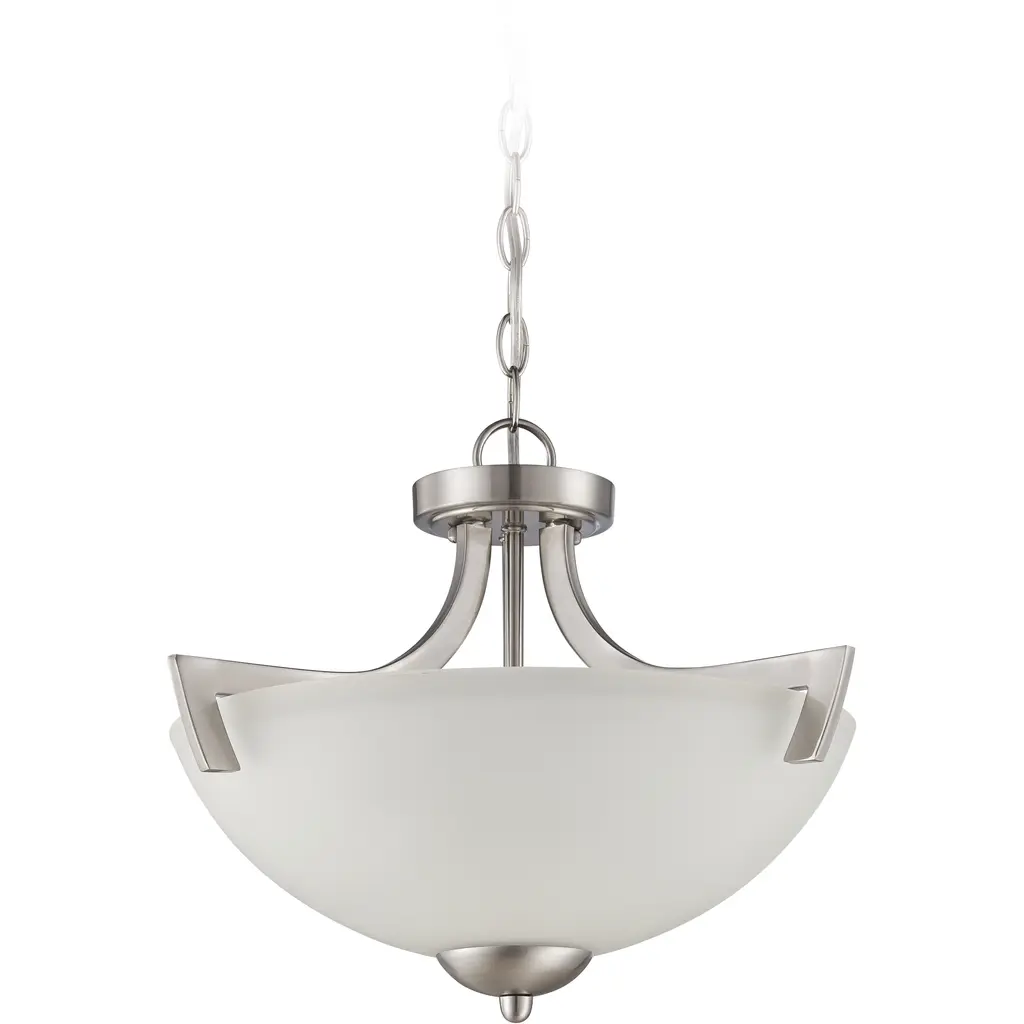 Almeda 3 Light 18 Inch Satin Nickel Convertible Semi Flush Ceiling Light In Frost White, Convertible To Pendant