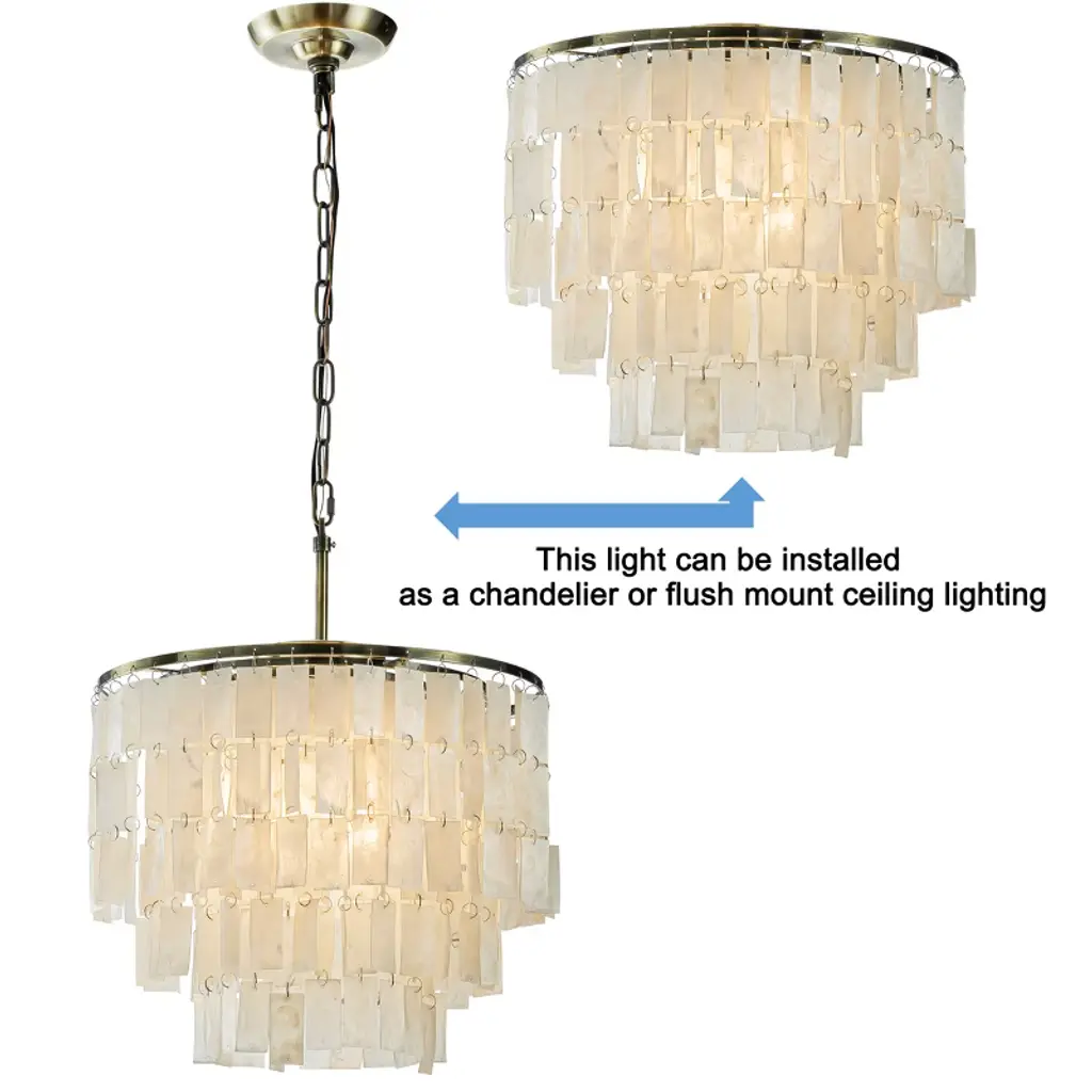 Aloadecor 3-light 18" Bronze Farmhouse Coastal Capiz Shell Tierd Chandelier 3-tier Glam Natural Seashell Hanging Light