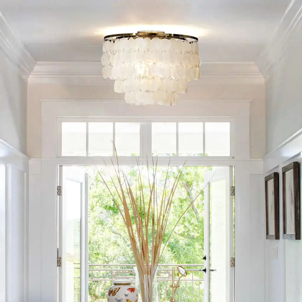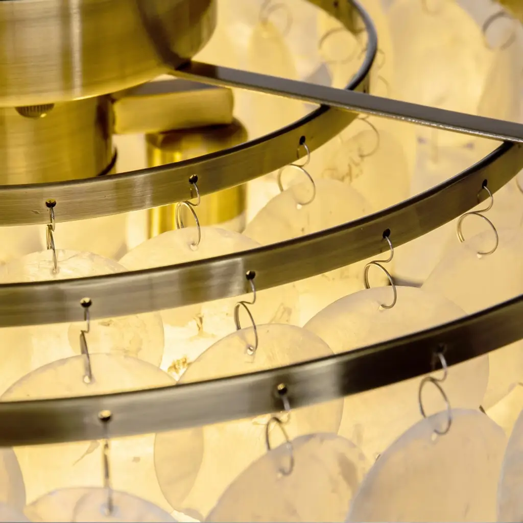 Aloadecor 3-light Farmhouse Tiered Antique Bronze Capiz Flush Mount Ceiling Light In Seashell Accents Pendant Lamp
