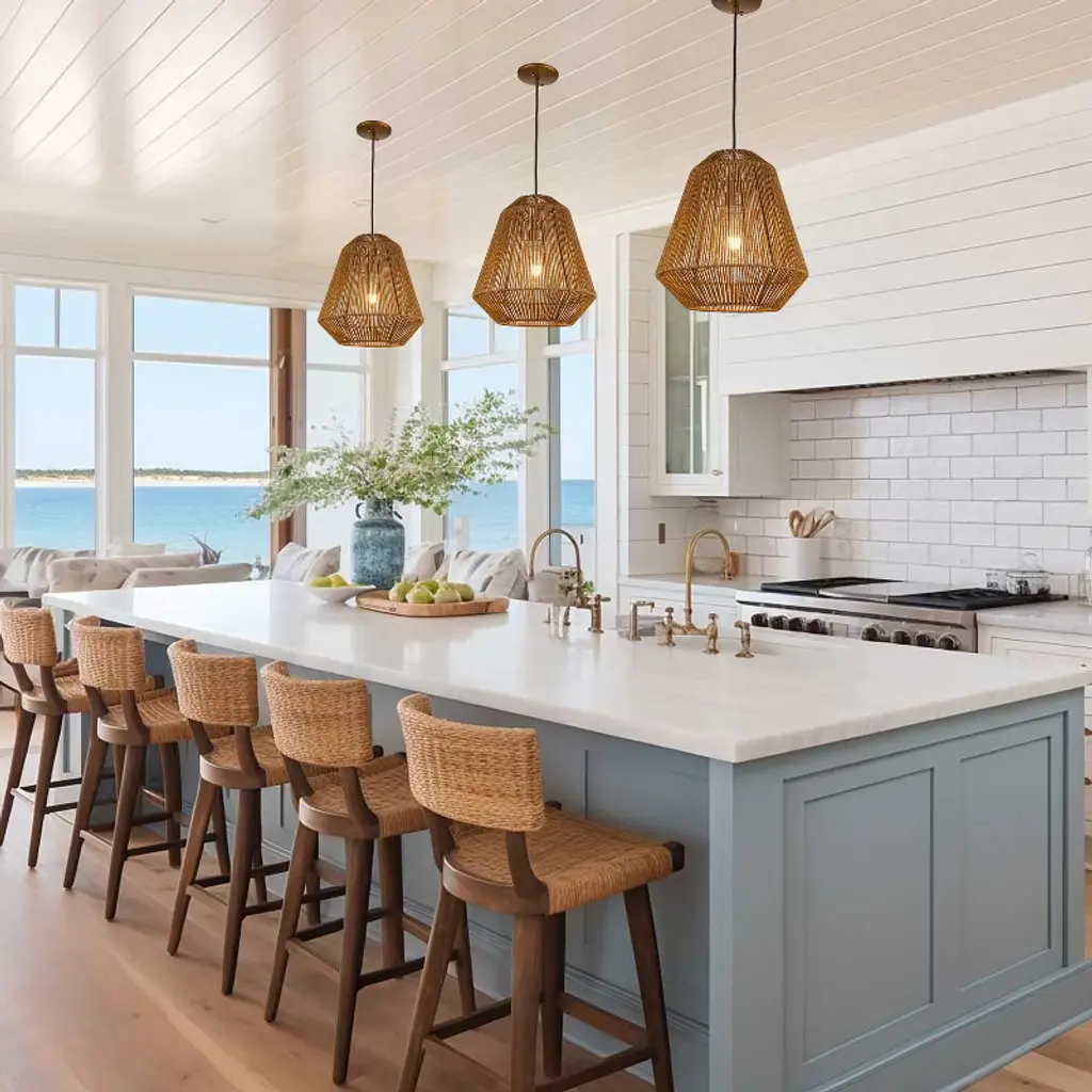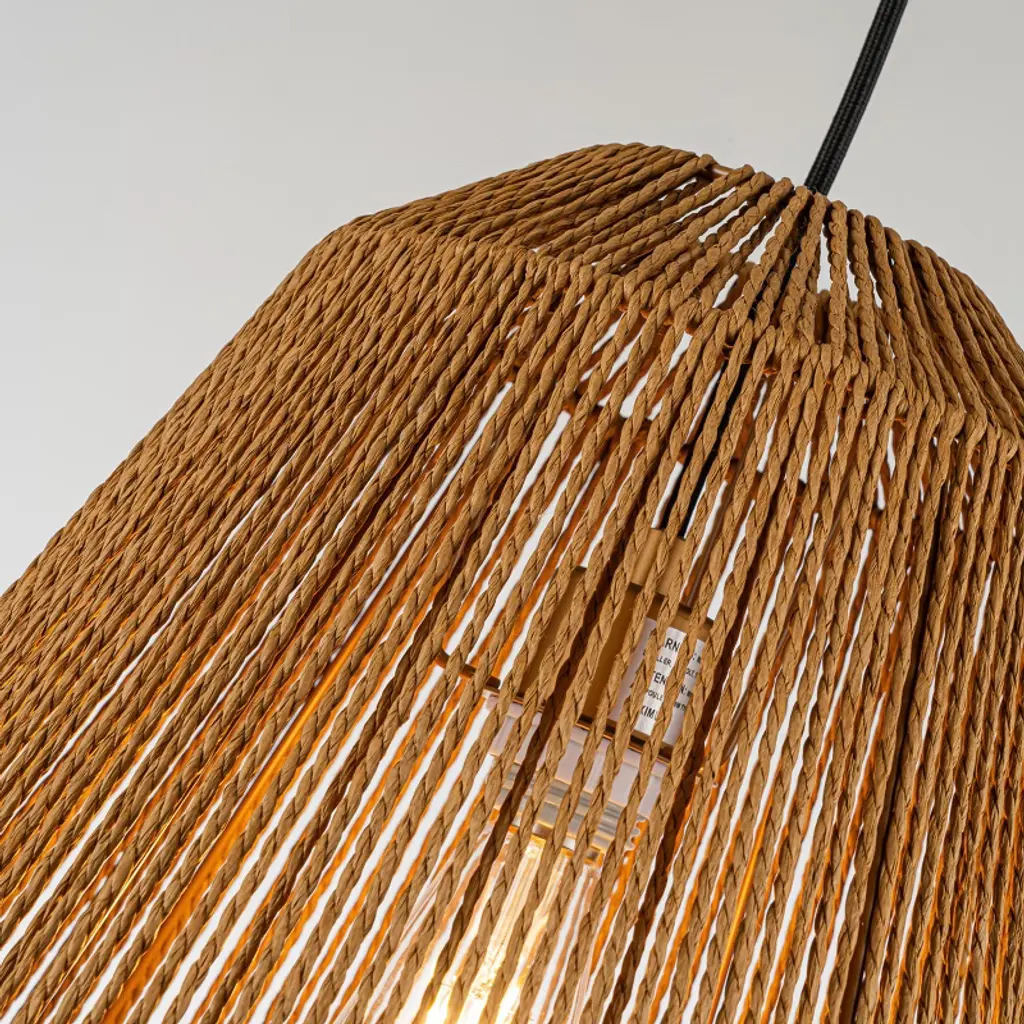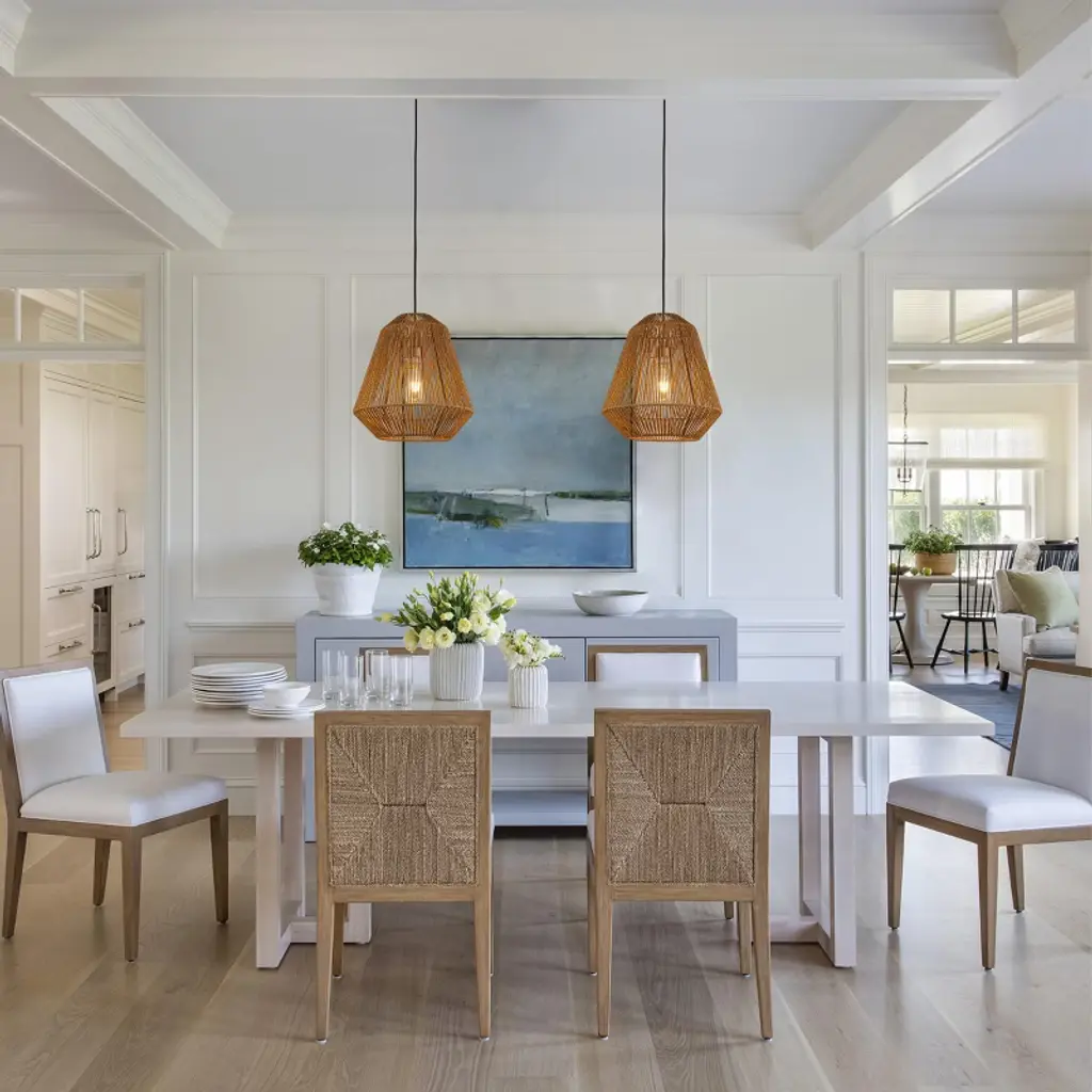 The pendant's natural aesthetic is complemented by its versatile design, which makes it a perfect match for a range of interiors. Whether your home speaks the language of rustic Farmhouse charm, breezy Coastal vibes, sleek Modern Farmhouse elegance, or eclectic Bohemian flair, this light fixture is designed to harmonize with your personal style. Each pendant is handcrafted by skilled artisans who carefully weave natural rattan into a unique lantern design. Embrace the organic appeal of the natural rattan material, which casts a warm, inviting glow. This meticulous process ensures that every piece is as authentic as it is beautiful, bringing an organic texture to your home's decor. With dimensions designed for versatility, this pendant light is an ideal choice for brightening your foyer, creating ambiance in your living room, adding character above your dining room table, complementing the casual comfort of a dinette room, or focusing attention on your kitchen island. This pendant is not just a lighting element; it's a centerpiece that stands out. The adjustable cord length allows for custom fitting in various settings, ensuring that it hangs at just the right height to capture the eye and illuminate your space. Step into a world where handcrafted design meets organic beauty with our Natural Rattan Pendant Light. Let it be more than just a light source; let it be a statement of your commitment to style, quality, and natural elegance.