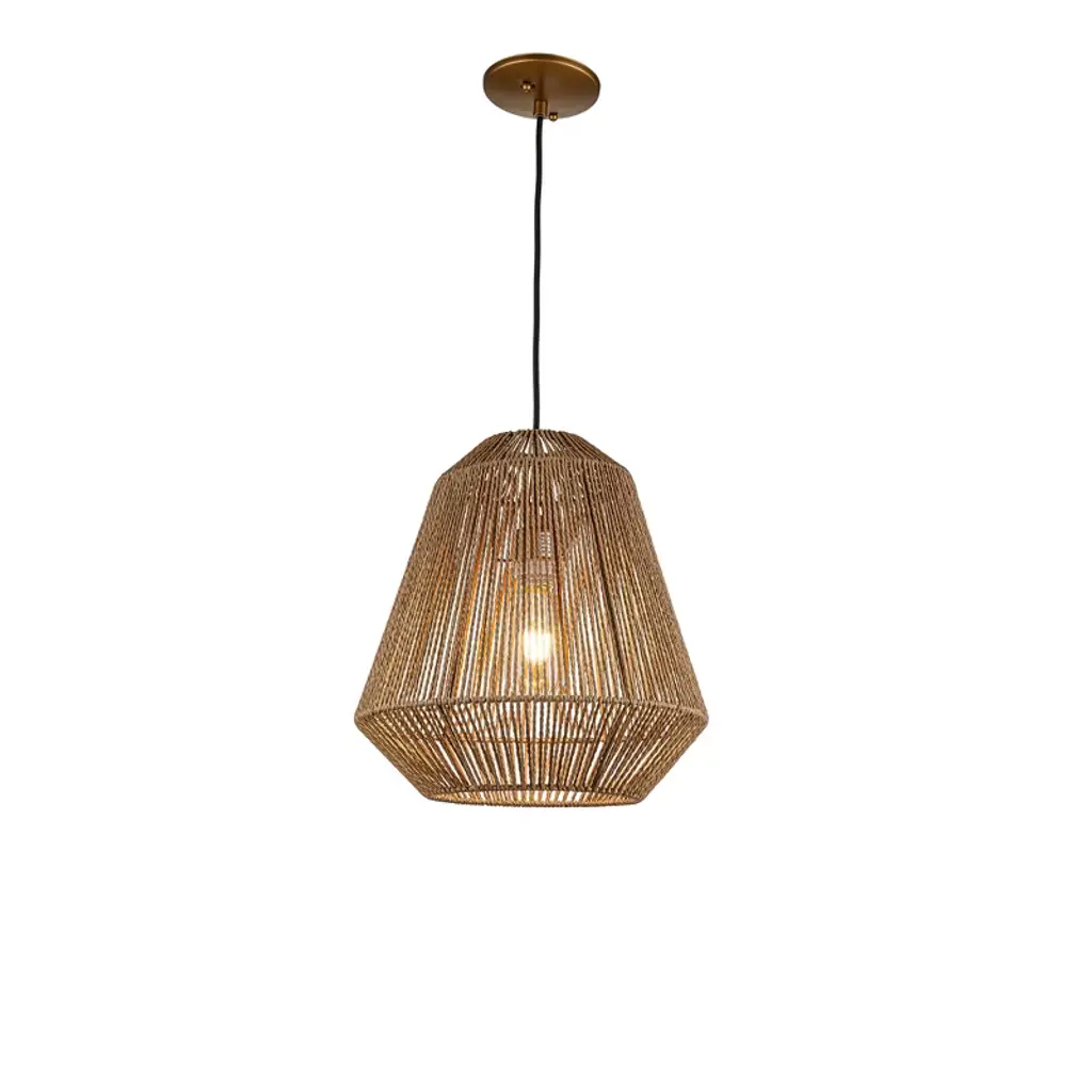 Aloadecor Handcrafted 1-light Farmhouse Natural Rattan Pendant Light-coastal Lantern Hanging Lamp With Rope Woven Shape