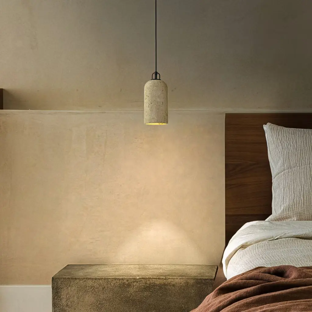 Aloadecor Modern Farmhouse Natural Travetine Single Pendant Light Coastal Cylinder Hanging Light For Bedroom And Dining Room(2-pack)