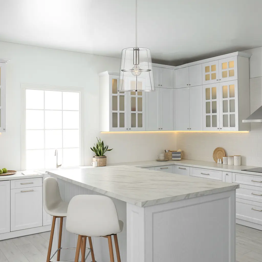 Contemporary and coastal design merge to create the Alonzo collection of pendant lights. Whether sleek matte black or shimmering polished nickel is more your speed, you're sure to fall in love with the large clear glass shades that provide maximum illumination. Install Alonzo in dining areas, hallways, or other medium-to-large areas where you need lots of overheard light.