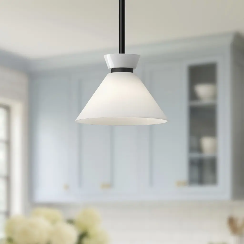 Inspired by the classic silhouettes of 1950s formal wear, the Halston inspires by mixing vintage with modern. Decorative glossy opal shades create ambiance and are pulled together with dainty metallic details. Add a touch of timeless couture to your space with this stunning collection.
