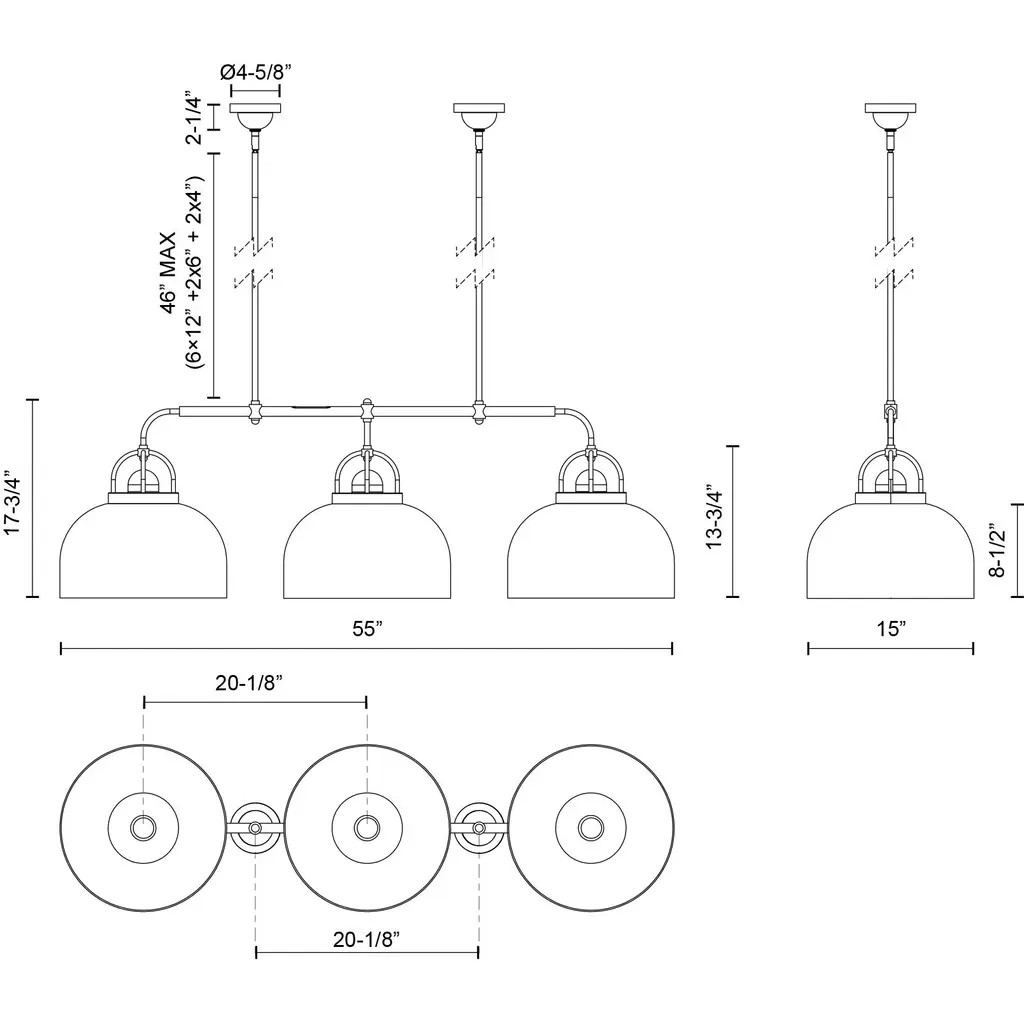 Alora Mood Lancaster 3 Light 55 Inch Chrome Linear Pendant Ceiling Light