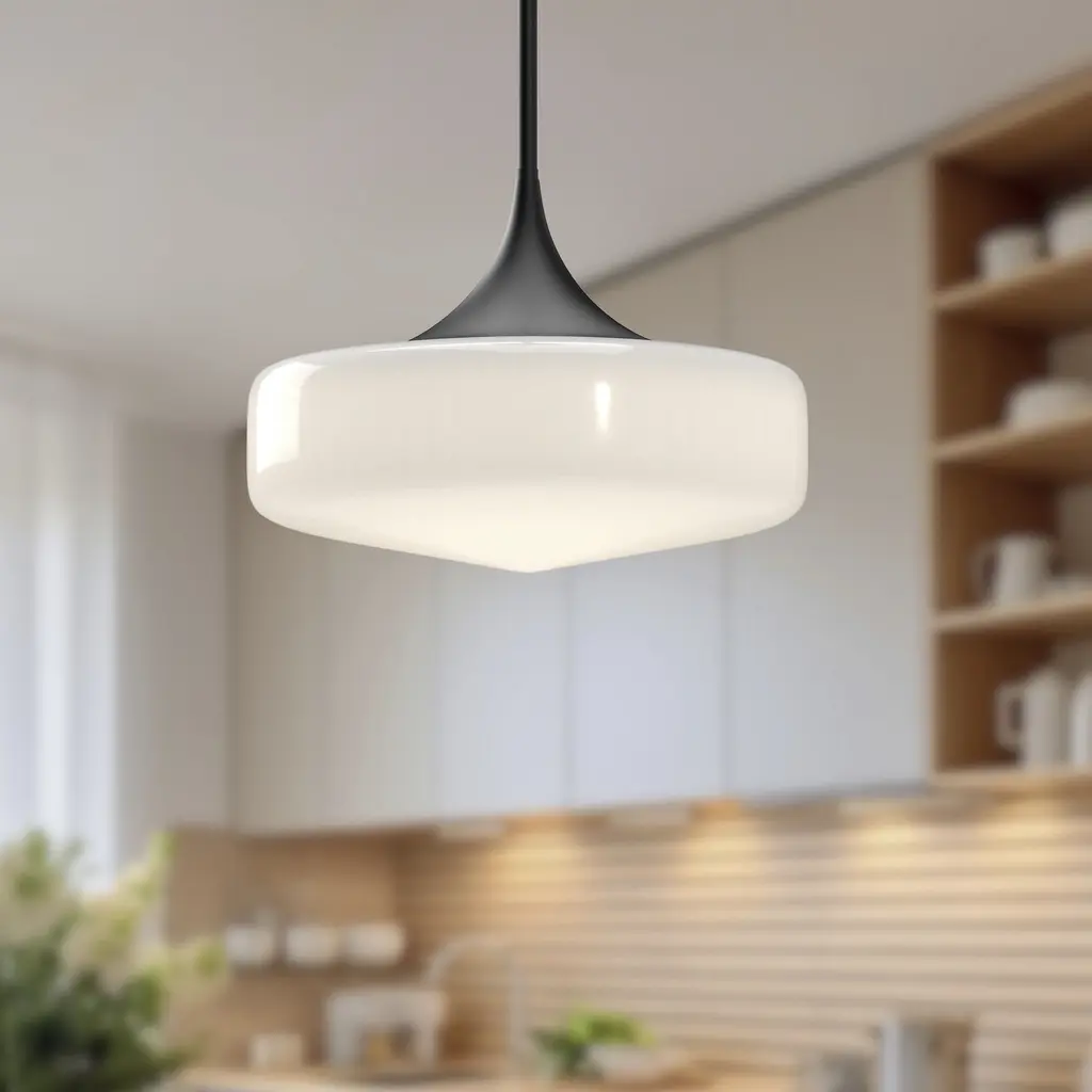 Taking cues from familiar and inviting spaces of old, the Lincoln is sure to captivate. The Lincoln's shape is inspired by schoolhouse fixtures made iconic in the 1940s and 50s, plus a touch of modern sensibility. The Glossy Opal glass shade is ample in size and adorned with organically curved metallic details.
