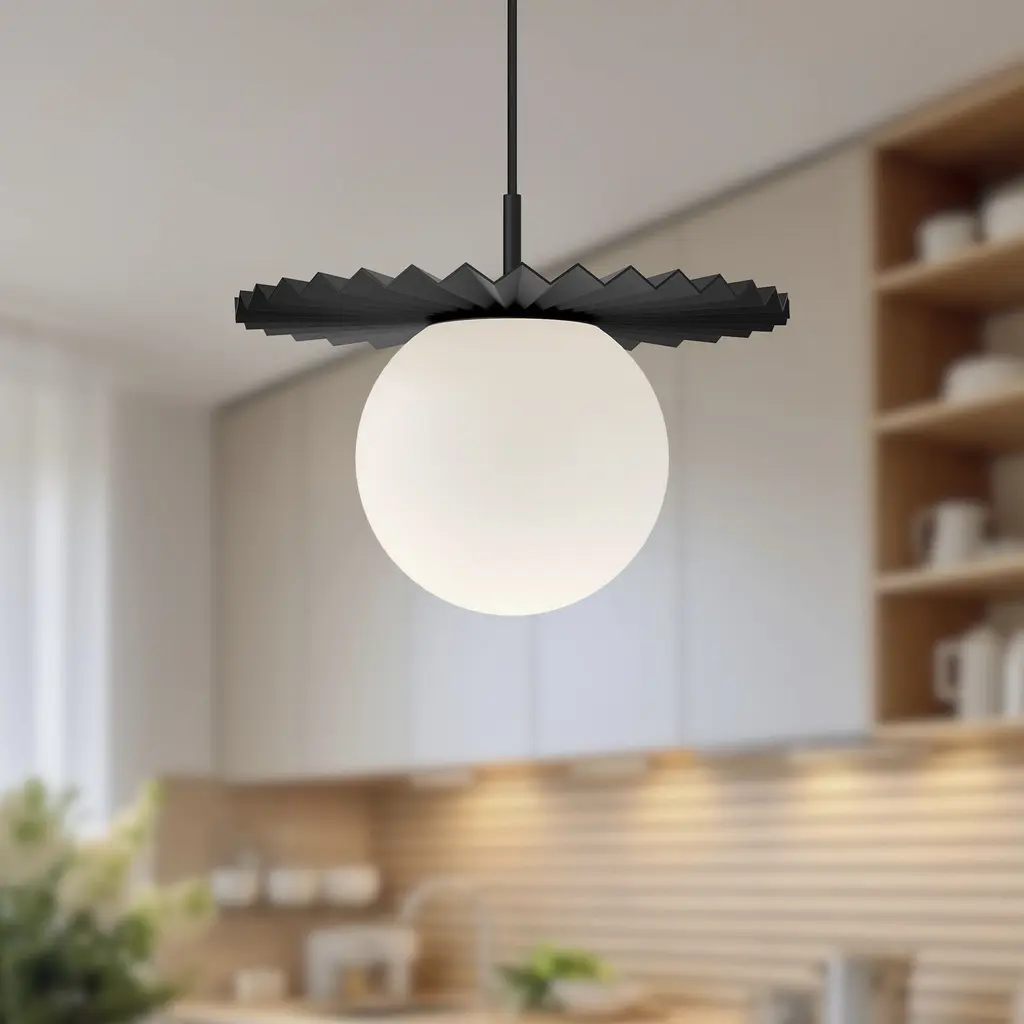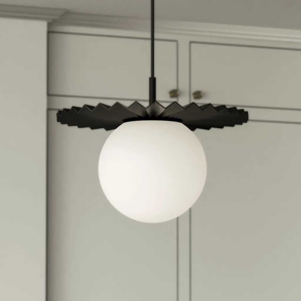 Taking notes from Paris Fashion Week, the Plume Collection exudes couture quality. With a pleated decorative disk and ample-sized Opal Matte glass globe, this collection is upbeat and stylish.