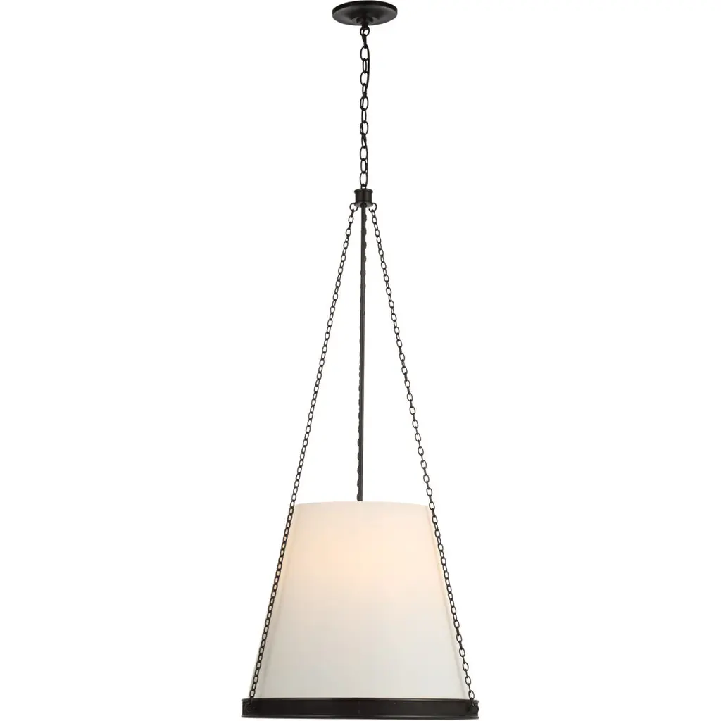 Transport yourself back in time to the most exclusive club in 1920s New York City with the classic Speakeasy pendant. With a white linen empire shade wrapped around a classically forged metallic hub, this collection will add the perfect amount of elegant ambiance to your space.