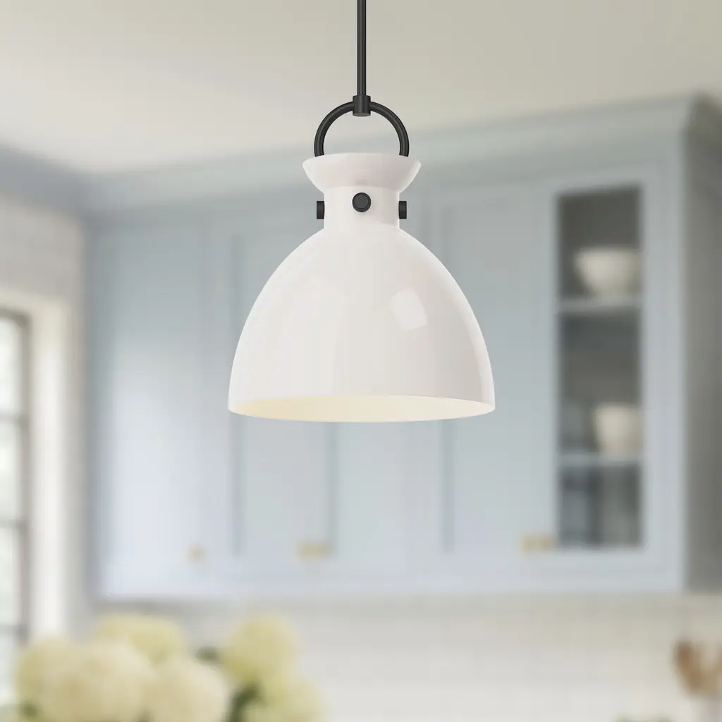Alora Mood Waldo 1 Light 14 Inch Matte Black Pendant Ceiling Light In Glossy Opal
