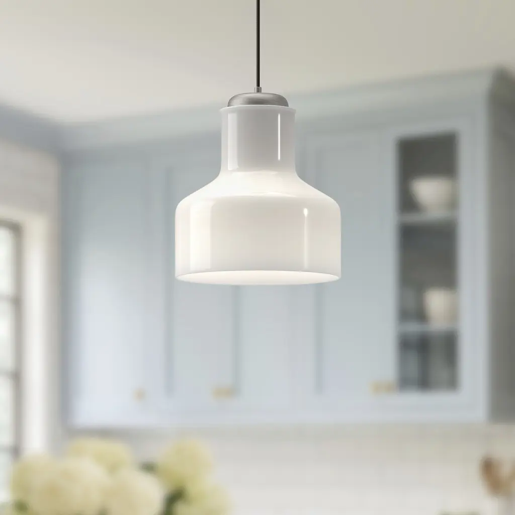 The Westlake collection captures the inviting charm of 1920s Paris. Vintage-inspired "milk jug" shaped glossy opal glass invites a warm ambient glow while strong, clean lines form the frame of this stunning collection. The Westlake is sure to bring the ambiance of a Parisian cafe into your space.