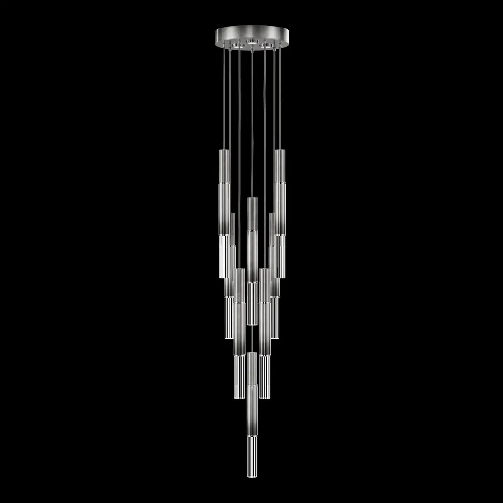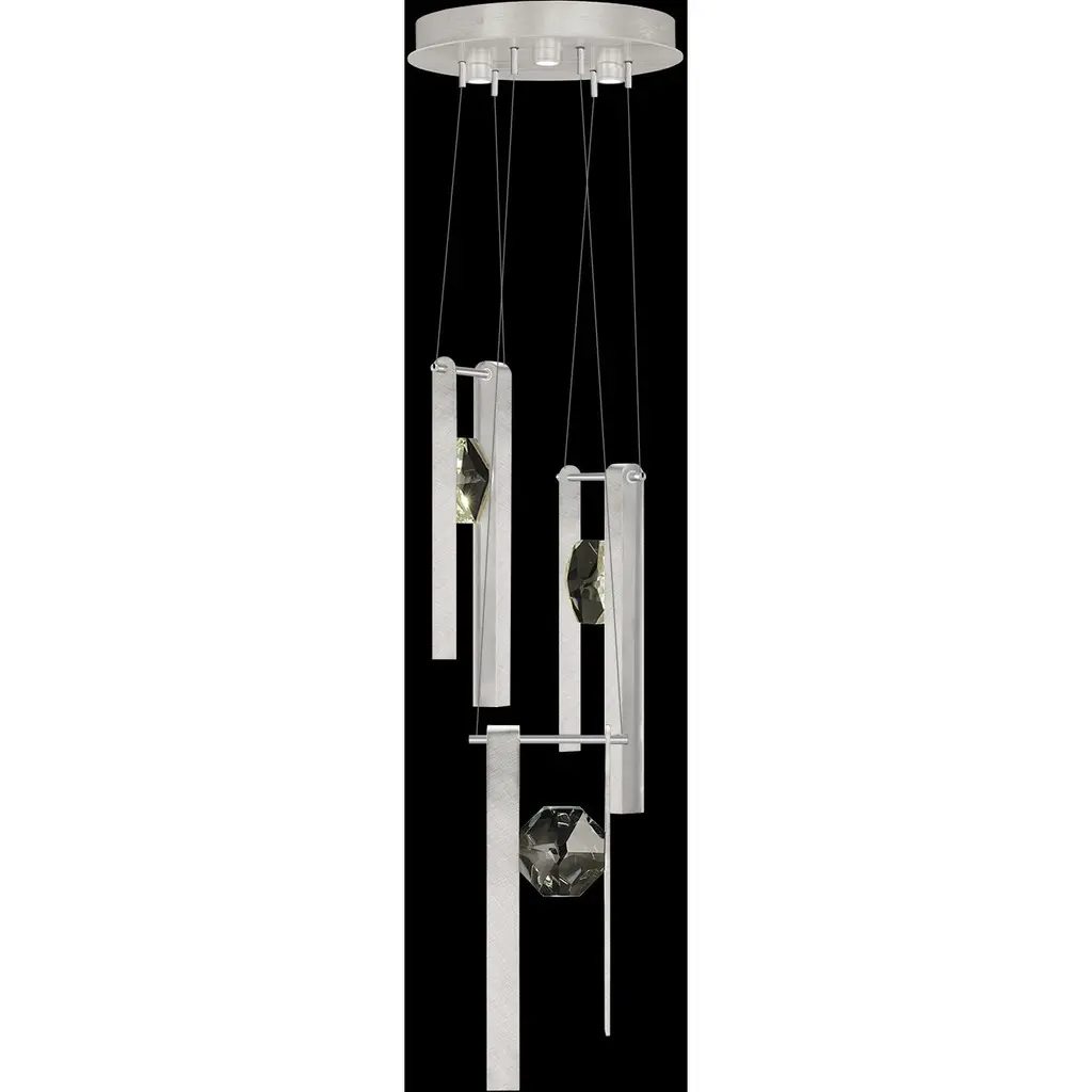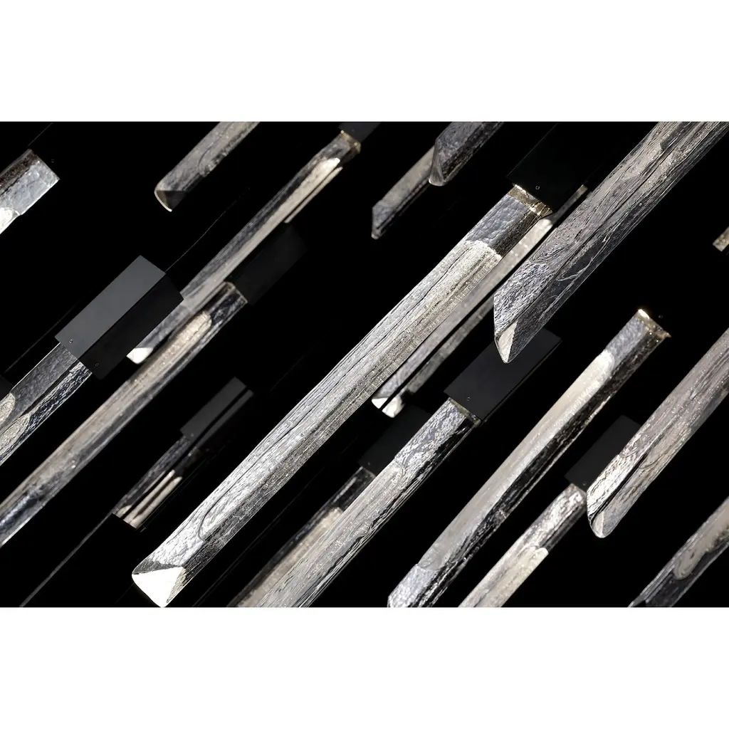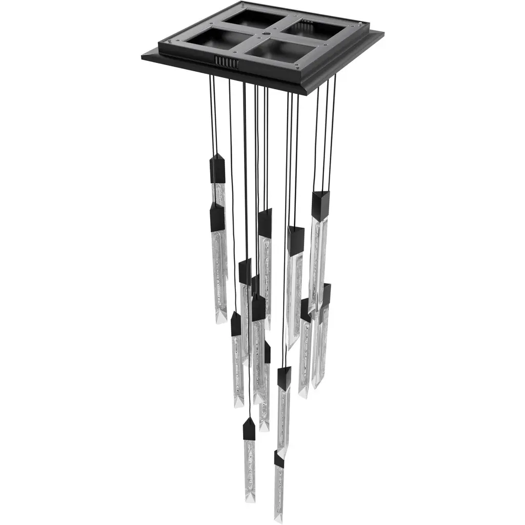 The Alpine collection features cascading marbleized crystals that beautifully mimic the movement of rainfall. Suspended from a sleek canopy, these angular crystals create a dramatic glow, adding both elegance and intrigue to any space.