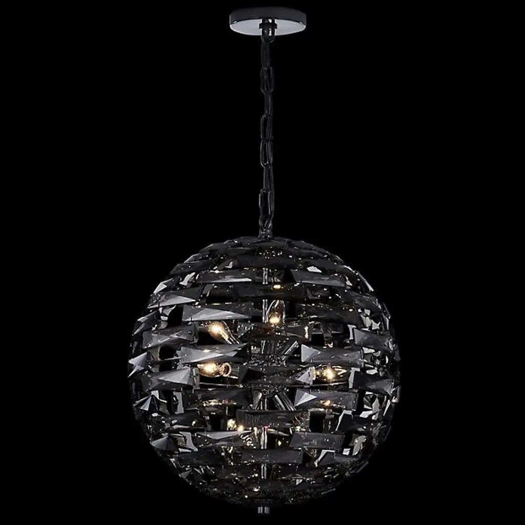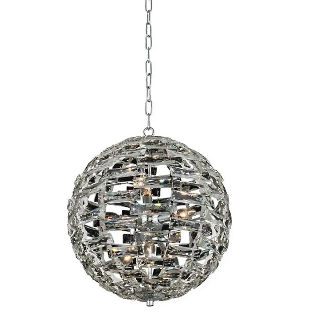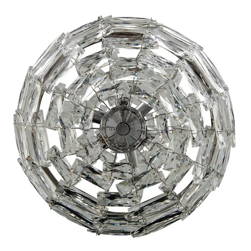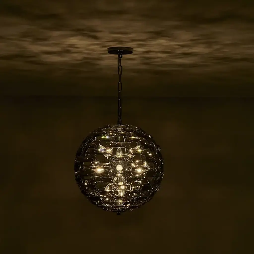 Decorate your home with the appealing nature of crystal with the Alta Pendant from Allegri by Kalco. Taking the form of an orb, this piece hangs from the end of a thin chainlink that allows the piece to stand on its own as it lowers into the room. The entire piece is made of several crystal bars precisely arranged to form a sphere. A Sputnik light cluster rests within, containing a set of nine bulbs that highlight the intricacies of the glass surface.