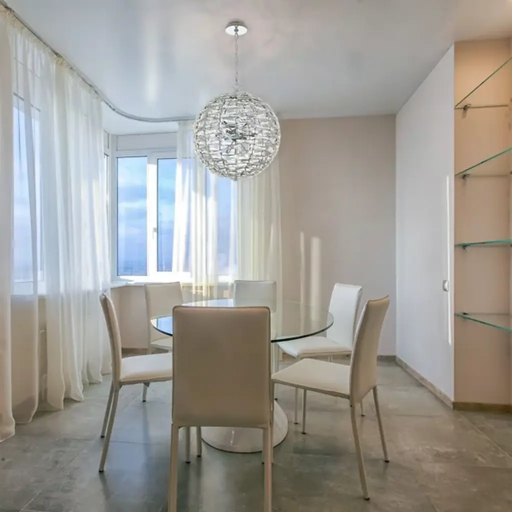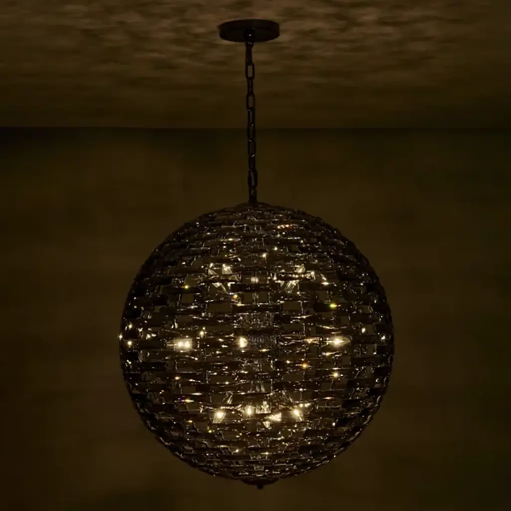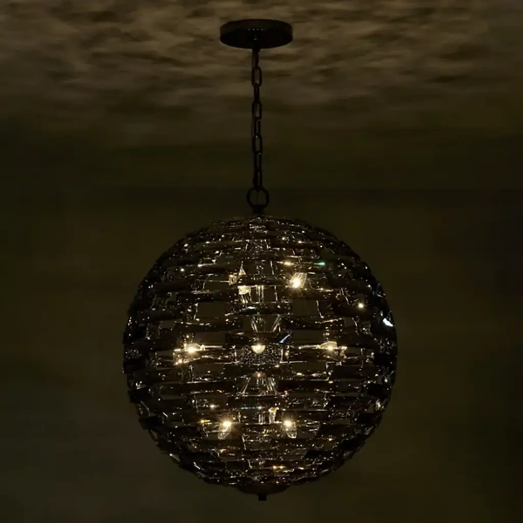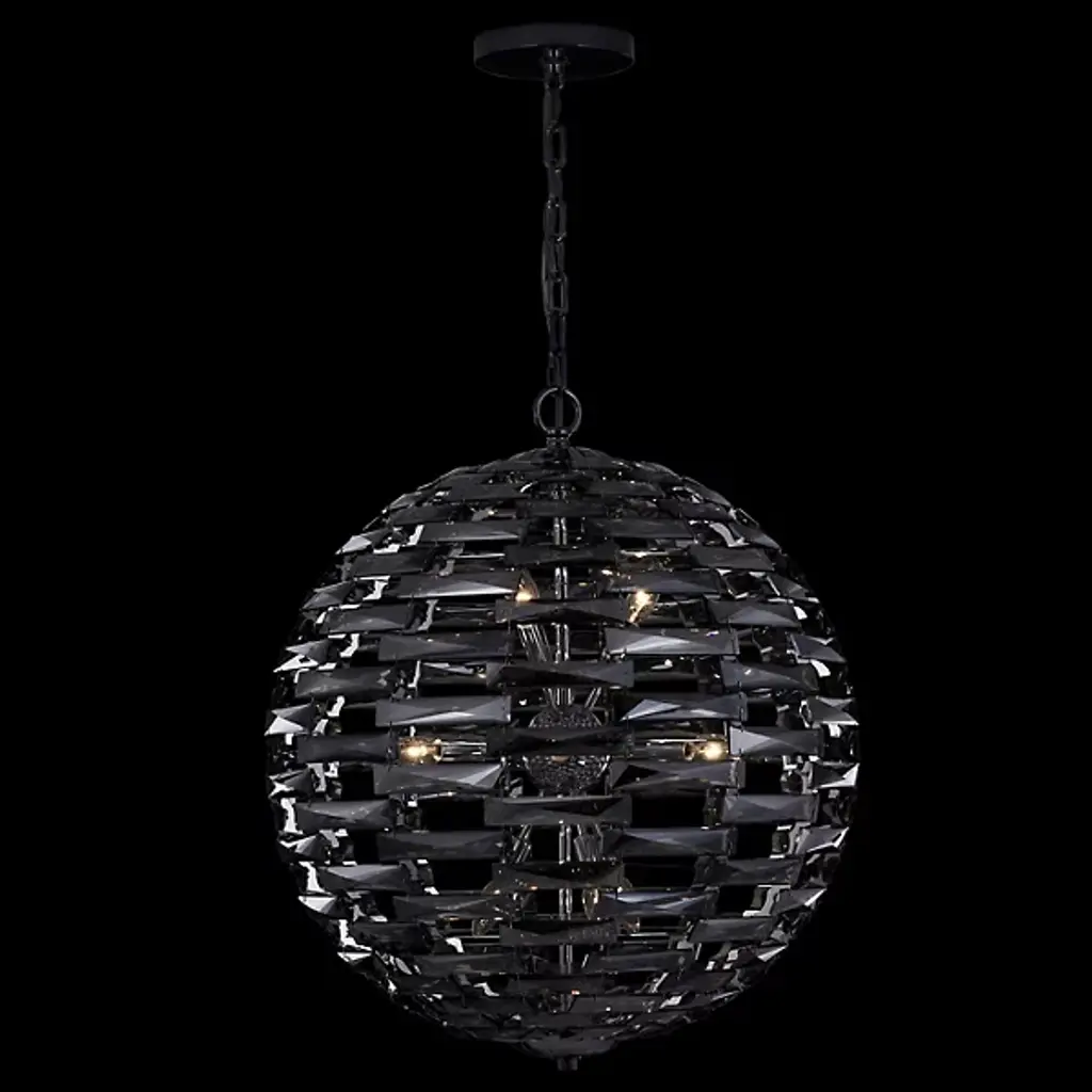 Decorate your home with the appealing nature of crystal with the Alta Pendant from Allegri by Kalco. Taking the form of an orb, this piece hangs from the end of a thin chainlink that allows the piece to stand on its own as it lowers into the room. The entire piece is made of several crystal bars precisely arranged to form a sphere. A Sputnik light cluster rests within, containing a set of nine bulbs that highlight the intricacies of the glass surface.