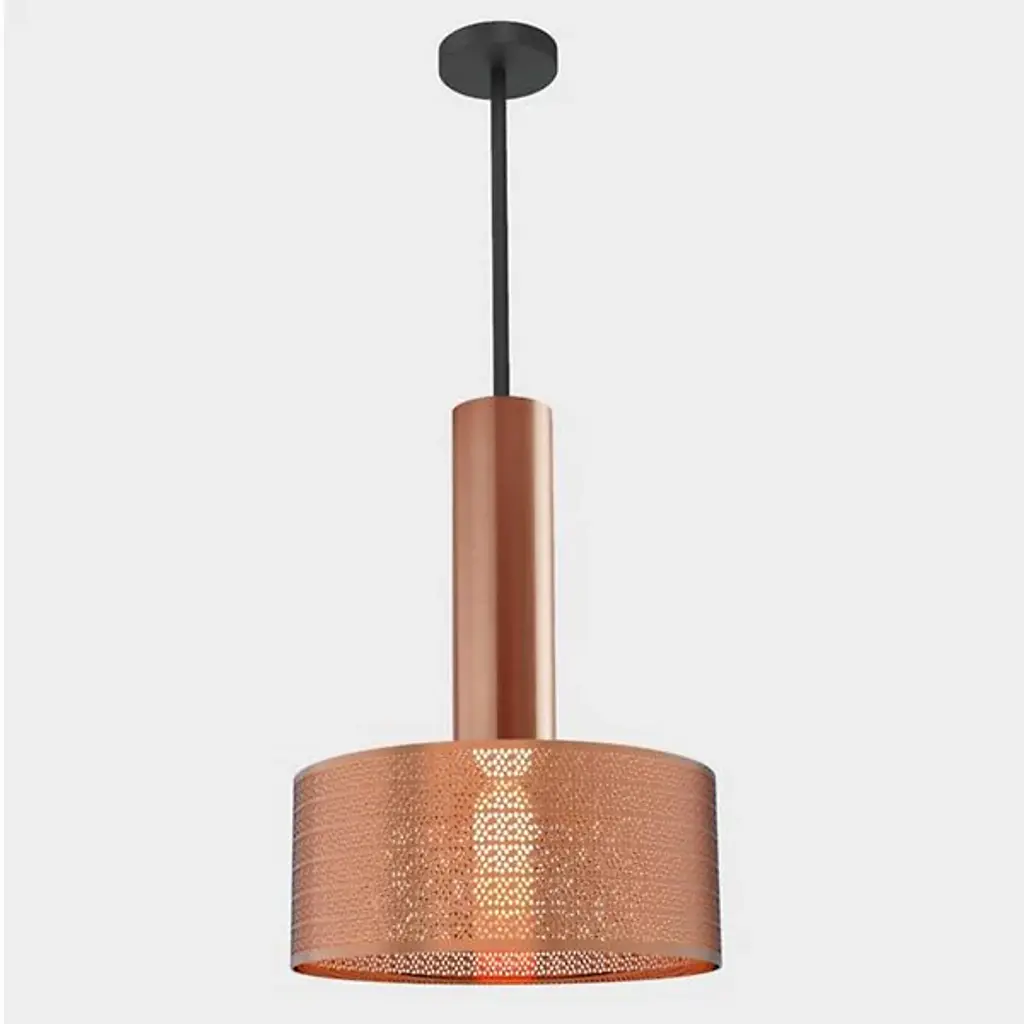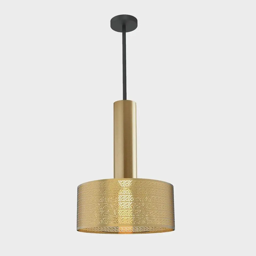 Contemporary form with traditional Moroccan flair. Bring instant sophistication to your rooms with the handcrafted Alula Pendant from Dounia Home. It’s a piece made entirely in Marrakesh, Morocco. Local craftsmen at Dounia Home are guided by a crafted tradition that dates back centuries. This tradition shows in the ancient hand puncturing techniques used in the shade. The shade starts as a clean geometric form made from recycled aluminum that feels natural in a 21st-century space. Artisans wrap the metal in tiny holes that serve as a stylish note with the lights off and a diffusing element with the lights on. Sleek geometry follows from the lamp holder up towards the suspension to underscore the contemporary, traditional fusion. With the lights on, the piece lets out a warm ambient glow. This glow silhouettes the intricate holes for a mesmerizing texture.