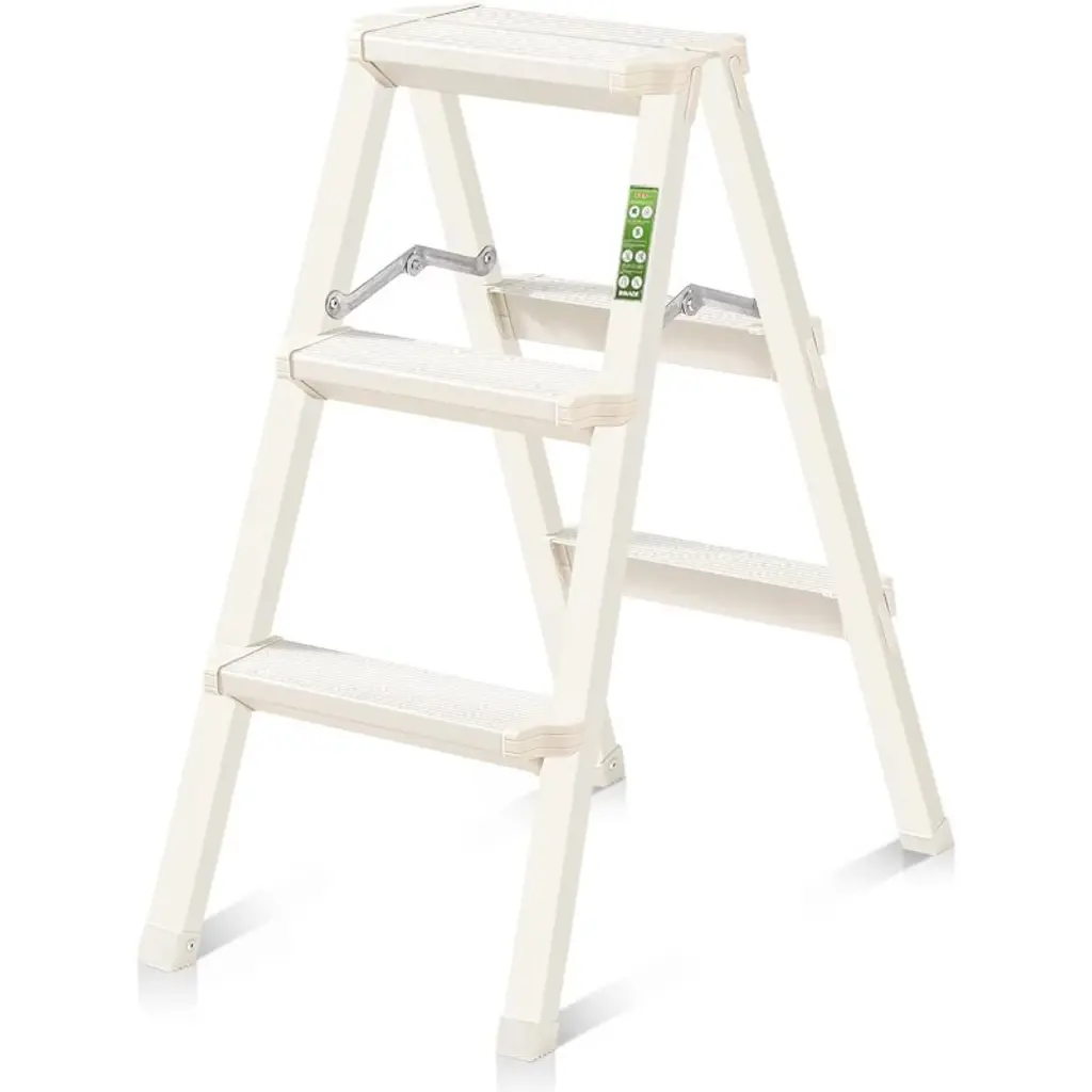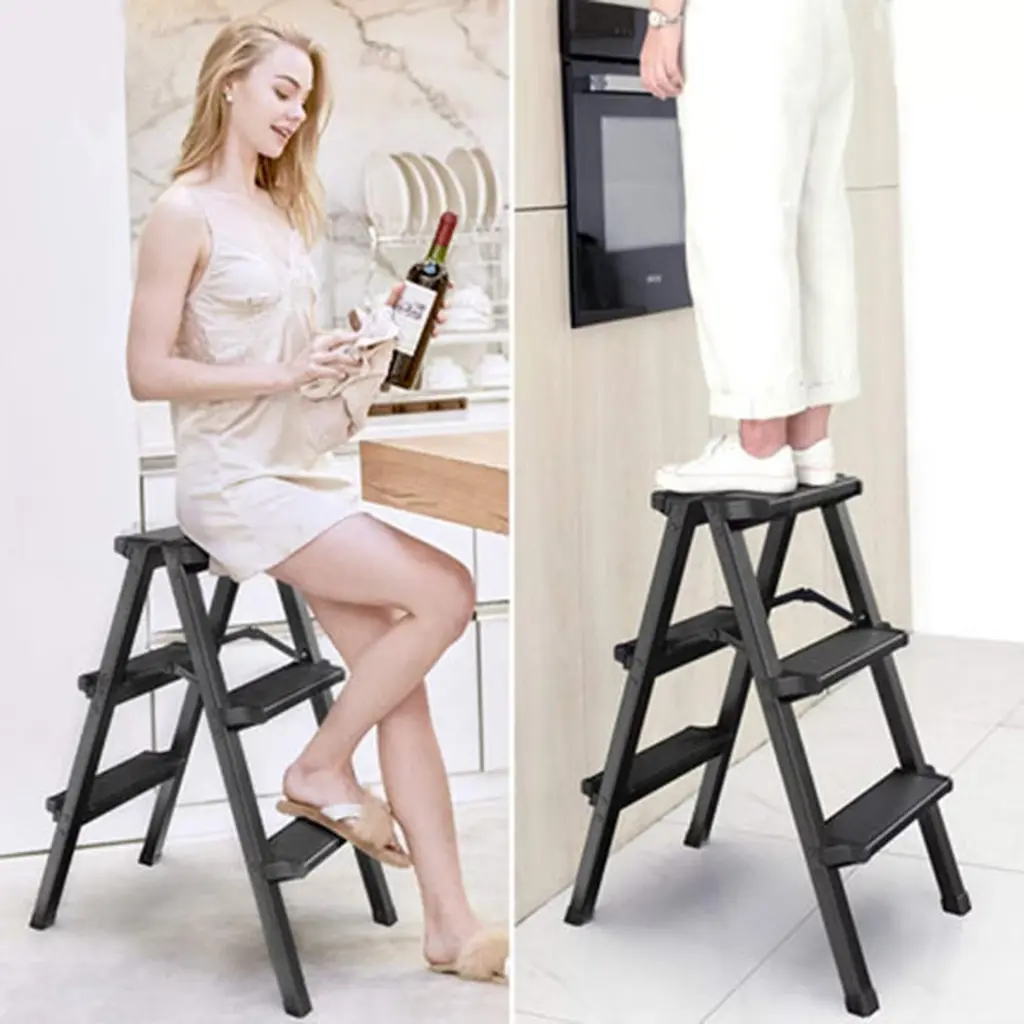 This aluminum step ladder is a versatile and essential tool for both home and office use. Crafted from high - quality aluminum, it boasts a lightweight design that makes it easy to move around while still being sturdy enough to provide reliable support.The ladder features anti - slip wide pedals, which not only offer a comfortable and secure standing surface but also prevent any accidental slips, ensuring your safety during use. Its folding mechanism allows for convenient storage, taking up minimal space when not in use.It can serve as a multipurpose workbench, suitable for a wide range of tasks such as reaching high shelves, changing light bulbs, or assisting with small - scale home improvement projects. Whether you need it for daily household chores or office maintenance, this aluminum step ladder is a practical and dependable choice.