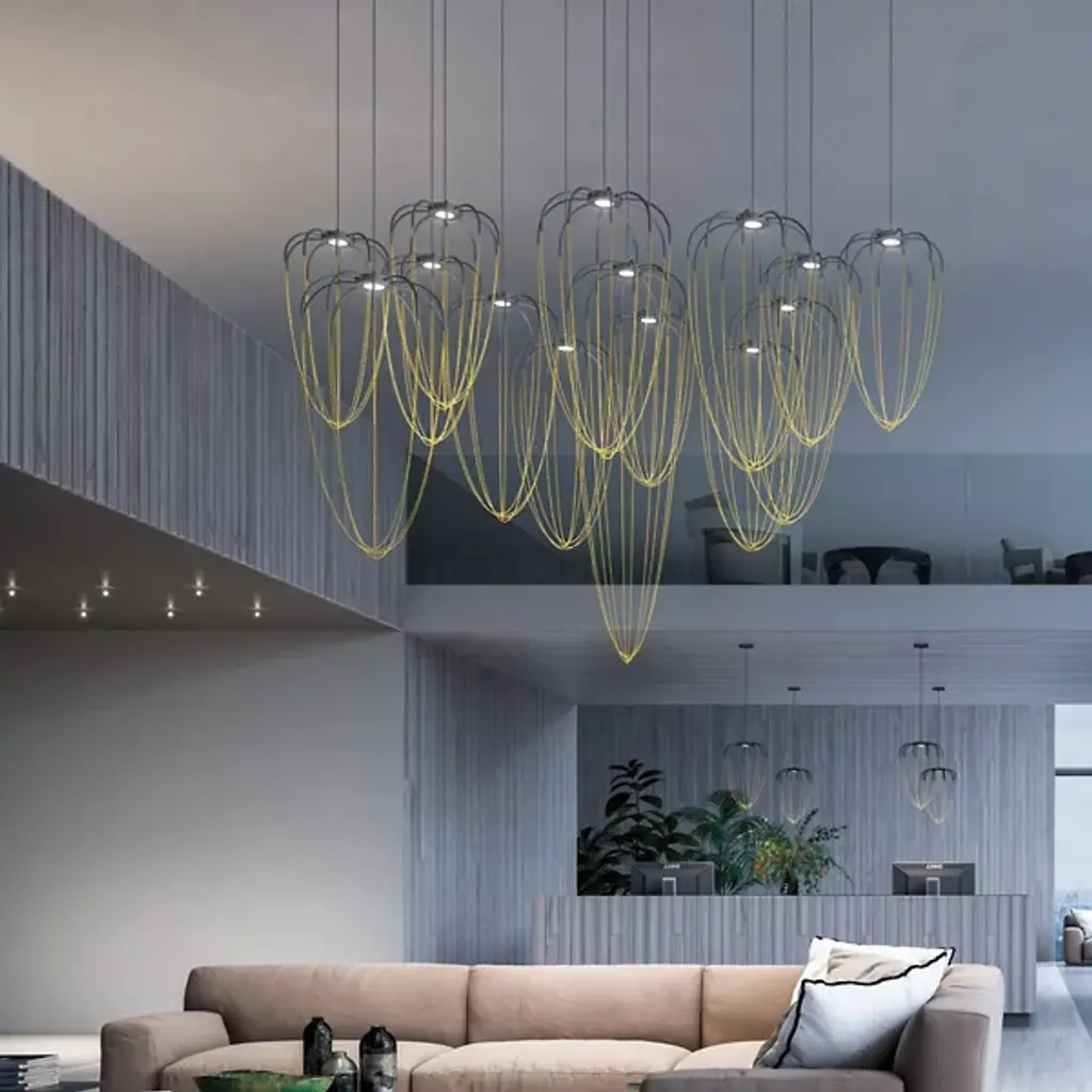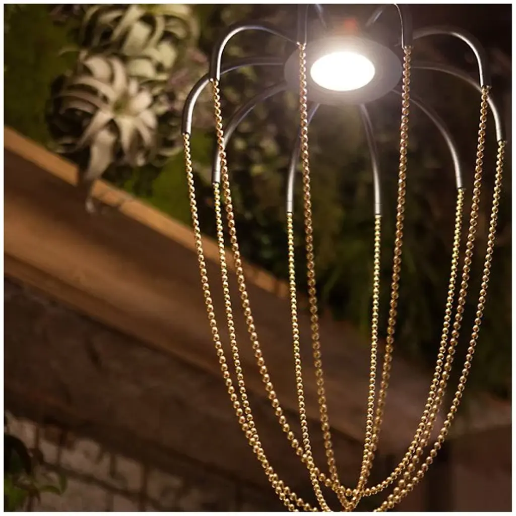 Create a radiant aesthetic in your interior design with the Alysoid LED Pendant by AXO Light. Sculptural and innovative with its clever use of negative space, this fixture boasts a crown of curved spokes that transition into suspended chain swags, invoking the sense of a larger pendant while staying true to the modern minimalism of a compact LED light source.