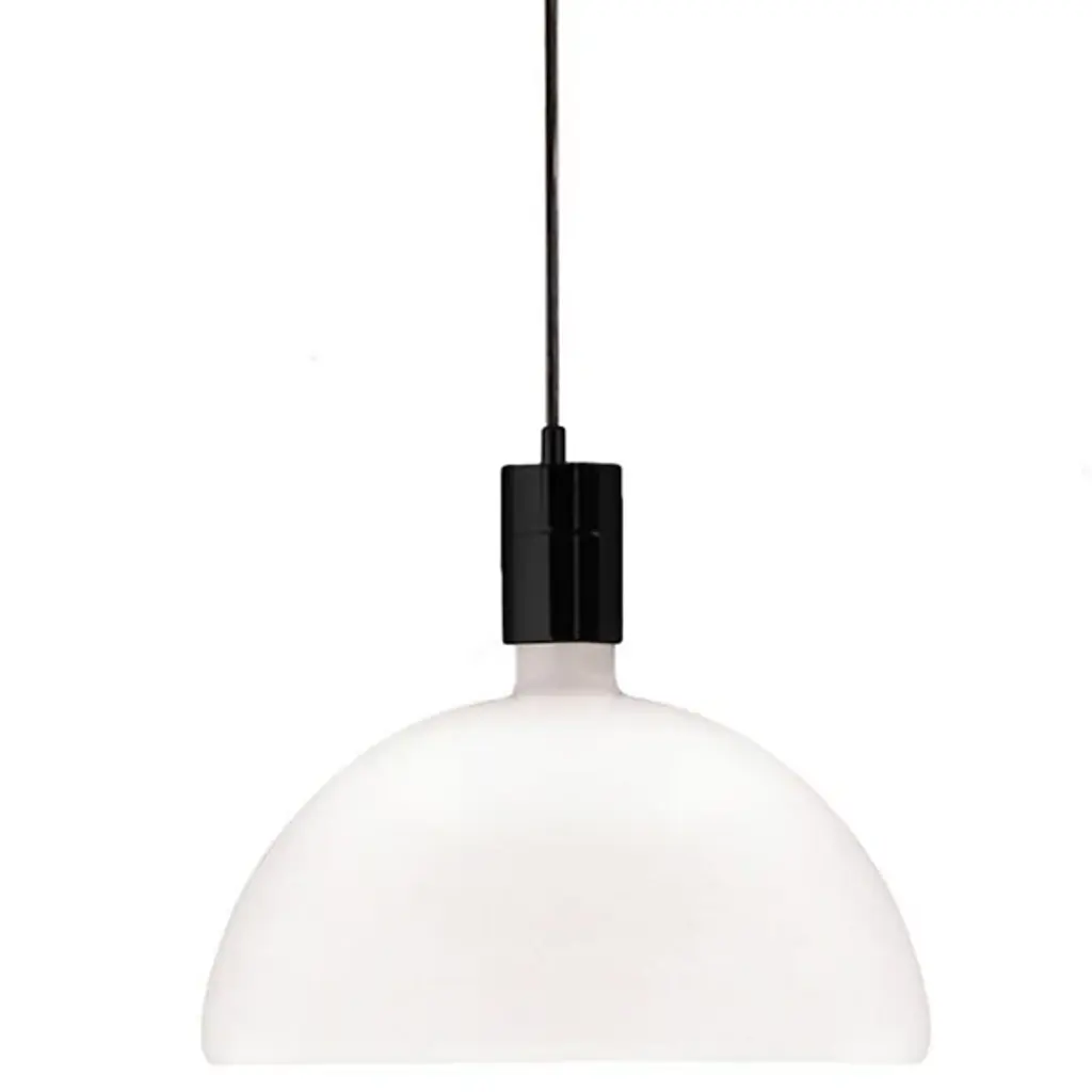 Originally designed back in 1969, the Nemo Franco Albini AM4C Pendant displays perfectly Albini's focus on clean, harmonious lines and high-quality materials. The dome-shaped blown White Opal glass shade flows seamlessly downward from the sleek, Chrome-finished holder to diffuse a wide spread of ambient and downlight. Ideal for illuminating and accenting any contemporary space.
