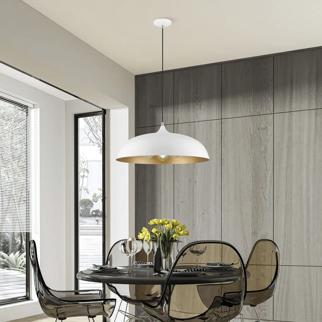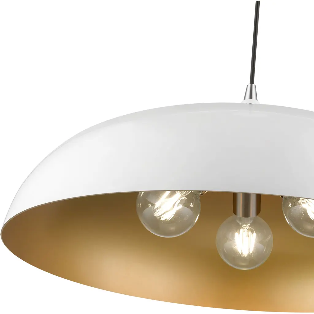 Amador 3 Light 24 Inch Shiny White With Polished Chrome Accents Pendant Ceiling Light, Large