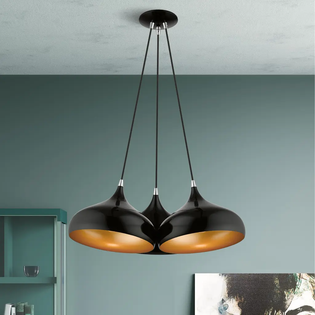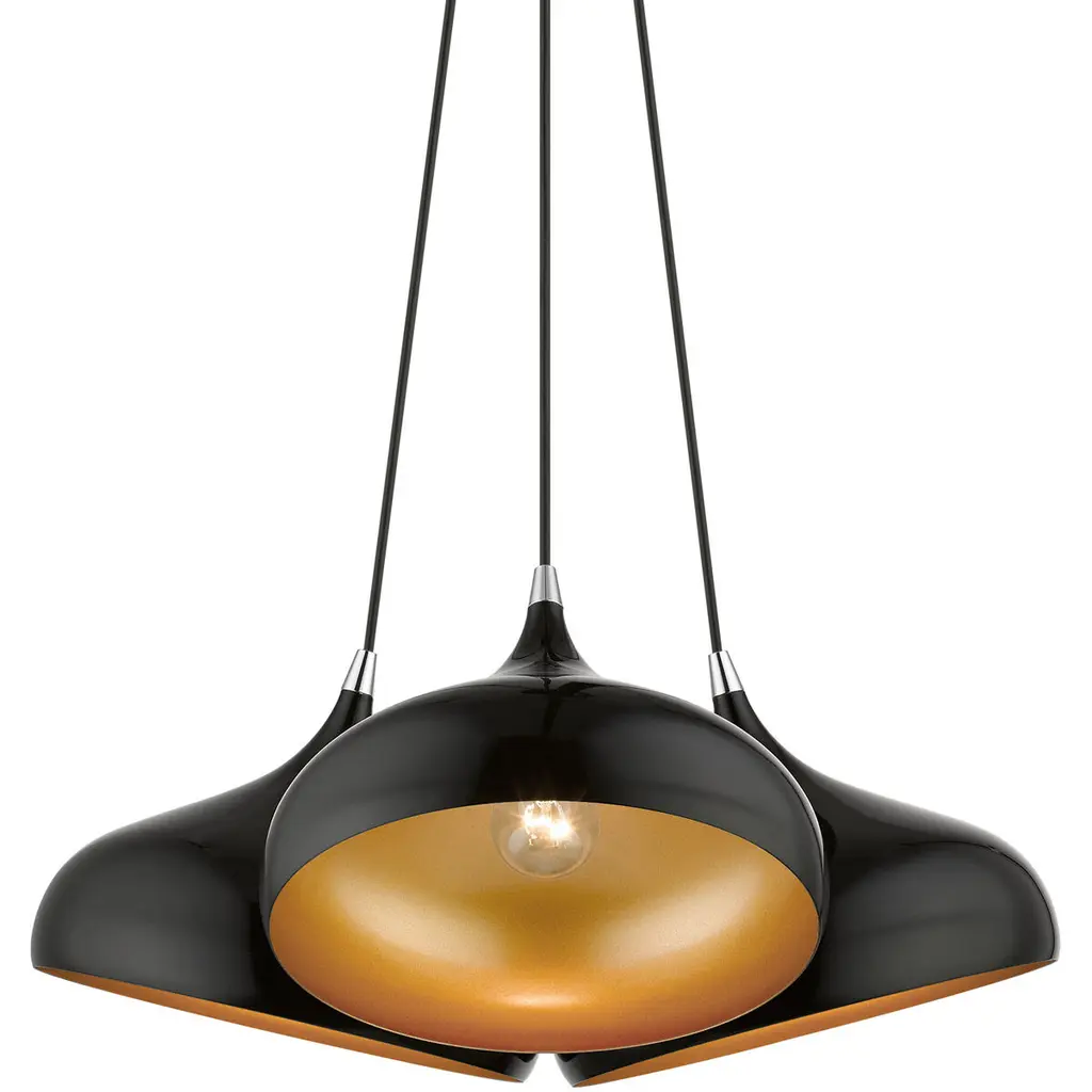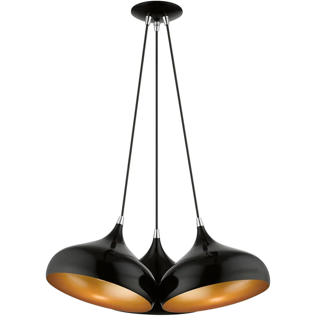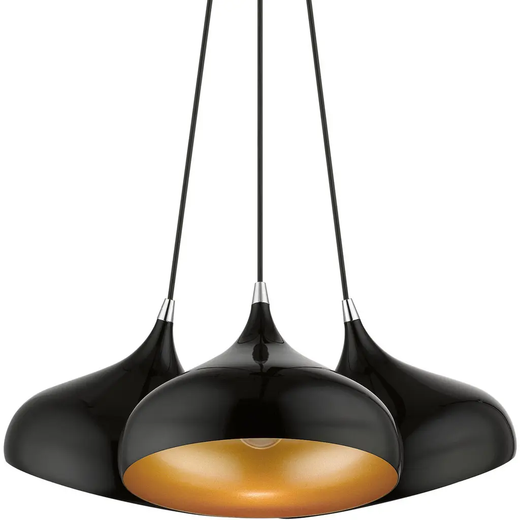 Amador 3 Light 25 Inch Shiny Black With Polished Chrome Accents Cluster Pendant Ceiling Light
