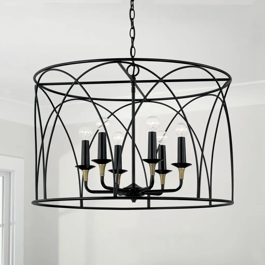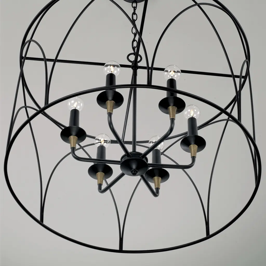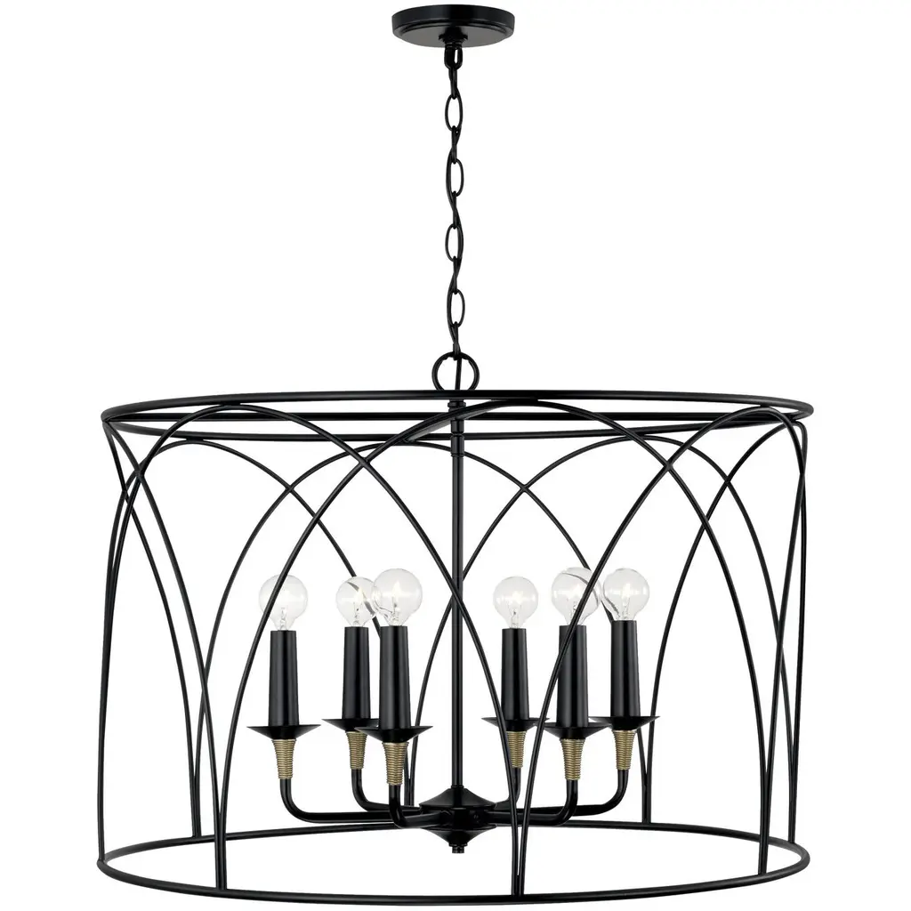 Amara 6 Light 28 Inch Matte Black With Brass Pendant Ceiling Light