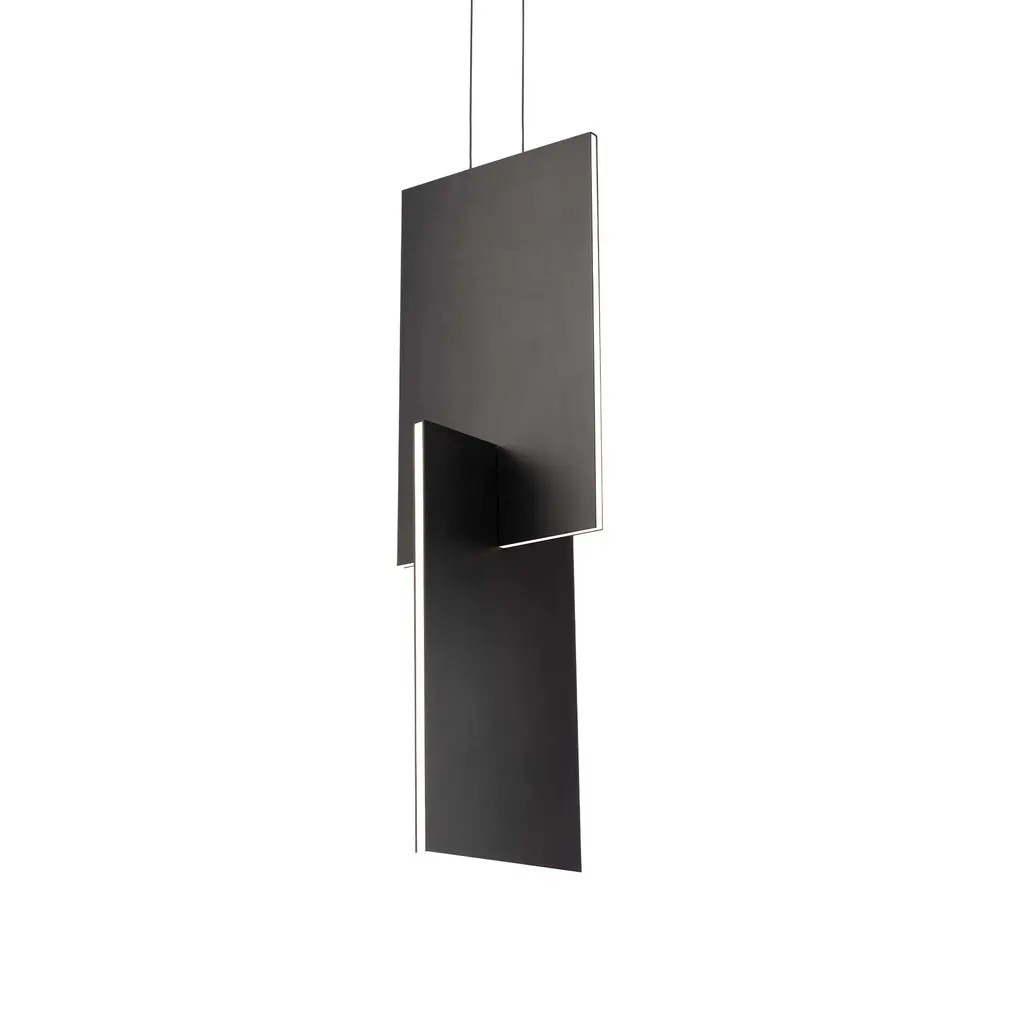 The Amari LED Pendant Light from Modern Forms embodies a refined interplay of form and function through its clean, sculptural design. Suspended by a minimalist circle canopy and parallel slim wires, two interlocking rectangular aluminum prisms create a distinctive cross-shaped silhouette. Edge-lit LEDs housed within each prism, softened by acrylic diffusers, emit a balanced, ambient glow that interacts with the fixture’s geometry to cast dynamic shadows, offering a sophisticated lighting solution that enhances contemporary interiors with subtle complexity. Highlights