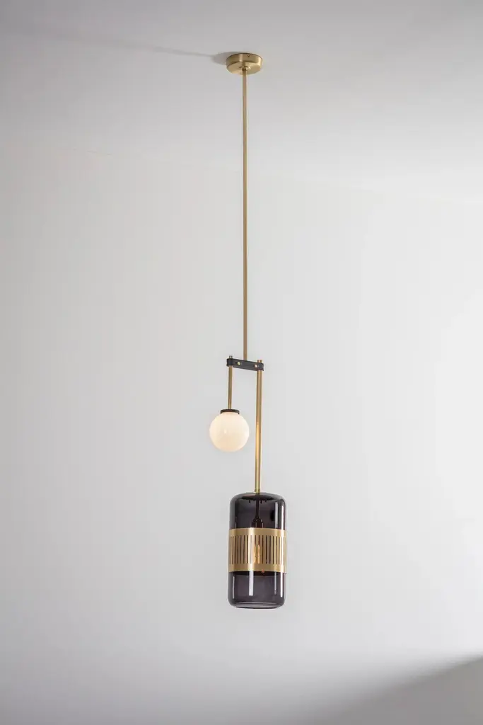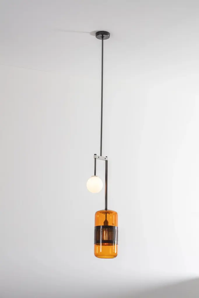 Amber bronze Lizak drop pendant by Bert FrankDimensions: D 78 x W 27 x H 78 cmMaterials: bronze and glassAvailable finishes: brass, opal and blueAll our lamps can be wired according to each country. If sold to the USA it will be wired for the USA for instance.When Adam Yeats and Robbie Llewellyn founded Bert Frank in 2013 it was a meeting of minds and the start of a collaborative creative partnership with engineering at the core.Both men share a love of design and deep respect for the heritage of British engineering. Both wanted to create high-end products that would stand the test of time and fly in the face of throwaway consumerism. The partnership has resulted in award-winning lighting and accessories that fuse the integrity of the small-scale workshop with timeless aesthetics reimagined for today.The two men work closely together from concept to end product. Robbie’s imagination and occasional flights of fancy are informed by Adam’s understanding of engineering principles and fabrication techniques. Equally, Adam's designs are often the starting point for a collection. In that sense Bert Frank is a true creative collaboration. As a result, every designed is honed to perfection, every detail carefully considered.