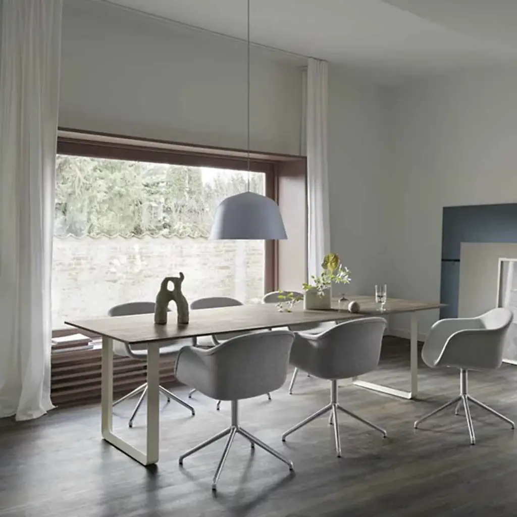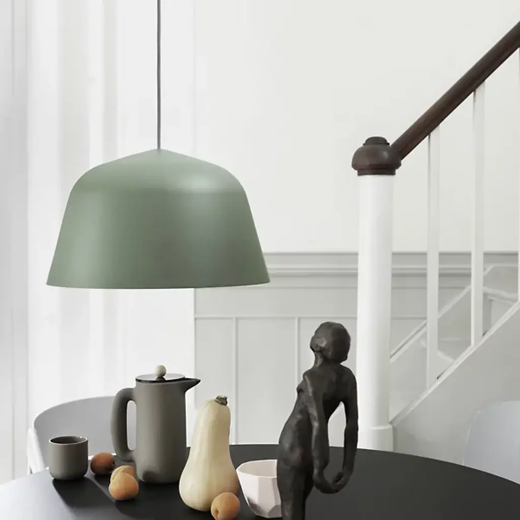 Designed in collaboration with Taf Architects in 2015, the timeless Ambit Pendant Light by Muuto is hand polished, hand-painted and hand-spun by skilled artisans. Showcasing a classic and versatile design, this beautiful pendant is available in many different colors and includes a matching rubber suspension cord. Suitable for both residential and commercial applications, this pendant light looks best in modern living rooms, hallways, and corridors.