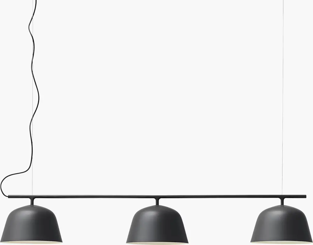 Designers Gabriella Lenke and Mattias Ståhlbom of TAF Studio strive to elevate common everyday objects, as evidenced by the Ambit Rail Lamp. Though this modern linear chandelier is simple, it's not devoid of character. Arranged along a tubular rail, its three shades are crafted of hand-spun, hand-painted aluminum. It's a refined lighting solution for residential and commercial settings alike. Bulbs (not included): 60W max. UL Listed. Made in China.