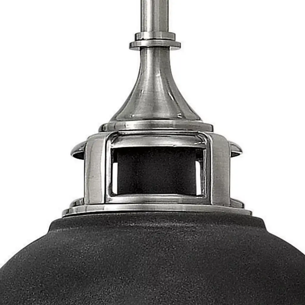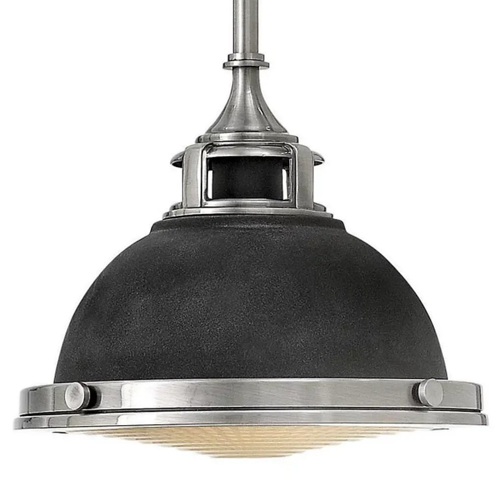 TheAmelia Small Pendant by Hinkley Lighting features a dome-shaped steel body capped with an etched prismatic glass lens. In addition to providing ambient illumination, the lens refracts light along descending, tapered planes for a shimmering effect. The color of the surrounding frame is dependent upon the finish you select, but all have been designed to contrast (or blend well, in some cases) with their complementary body. Accented by distinctive metal hardware.
