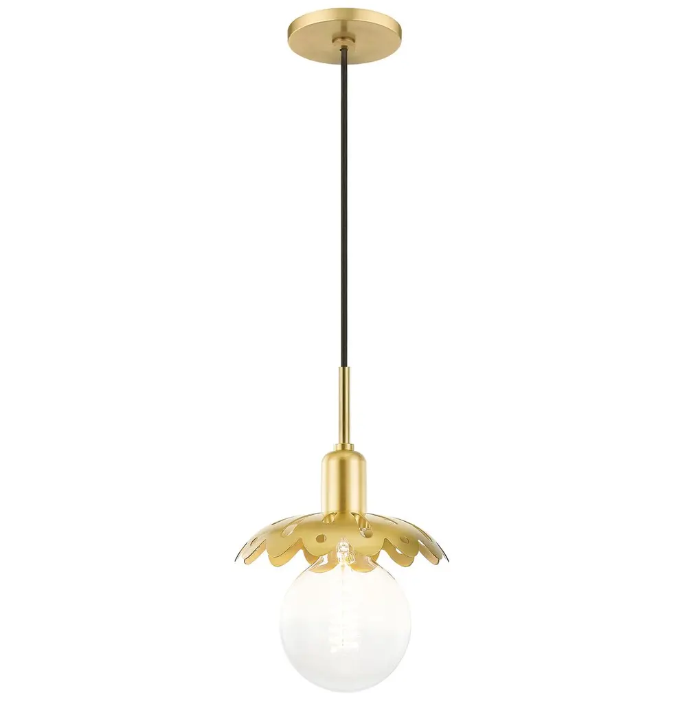 A metal shade resembling a fanciful flower caps this pendant's round bulb, commanding attention whether the light is on or off. Because the pendant is damp rated, you can use it in your bathroom as well as in your kitchen, in your entryway, or just about anywhere else in your home.