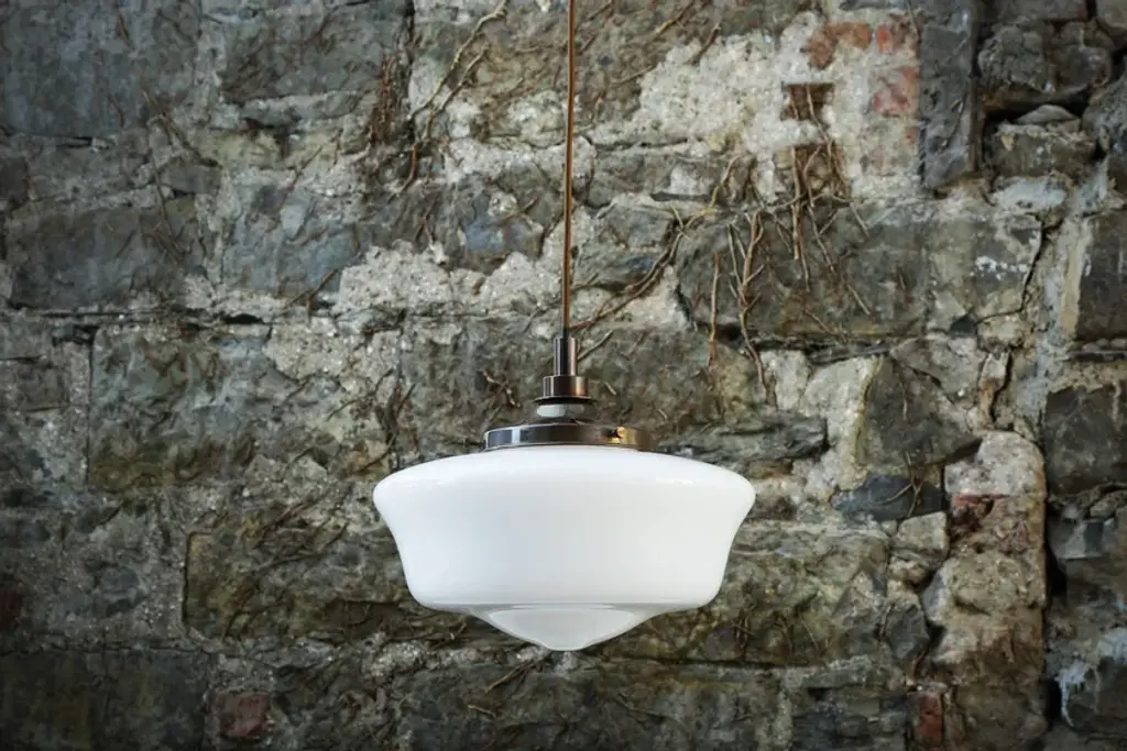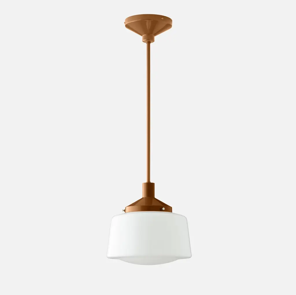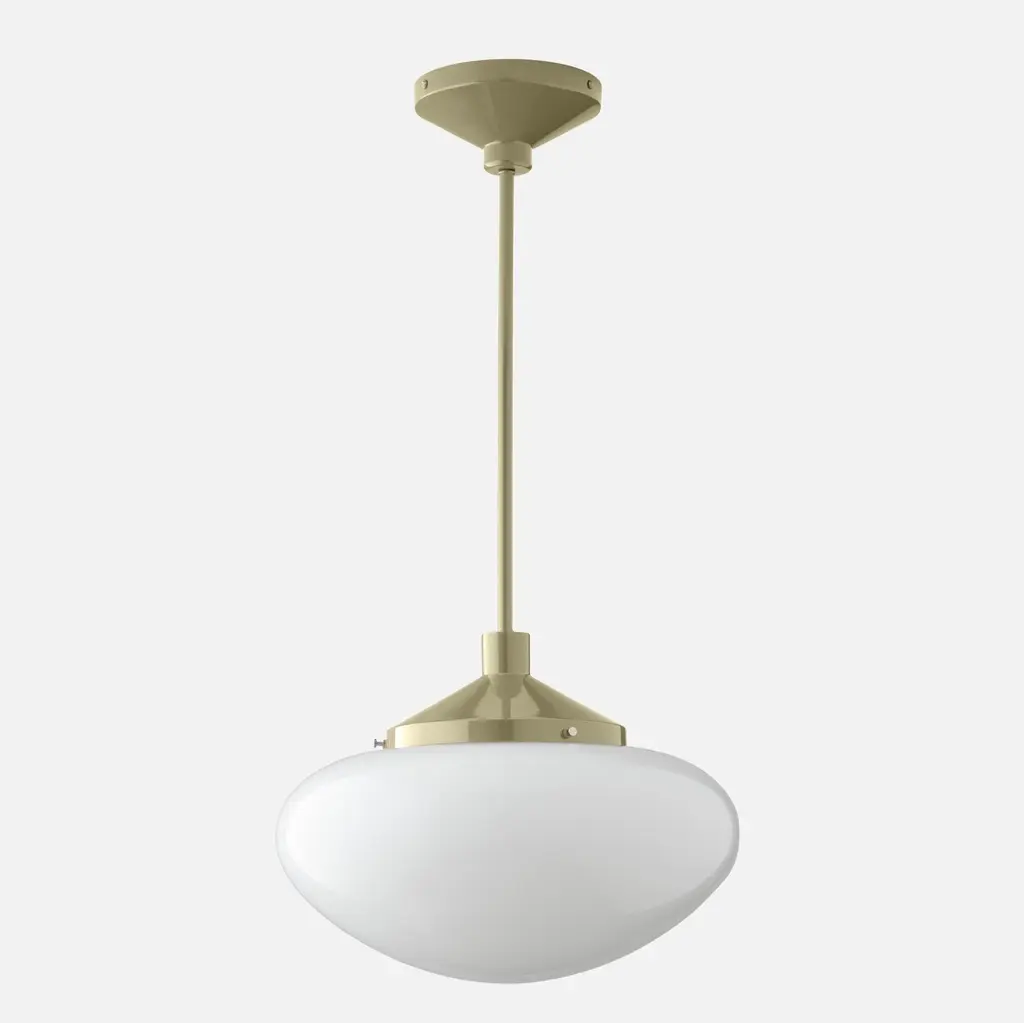 Anath schoohouse pendant light Material Brass | Steel | GlassFlex/Chain Length 100cm | 40”Weight 3.000kgMax Wattage 6.5w LEDVoltage 220/240vLampholder E27 | Plastic | ES | Edison ScrewIP Rating IP44Ceiling Attachment MLROSE31Glass Code GL041A