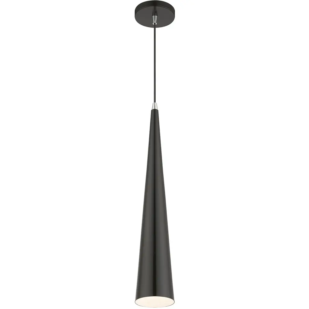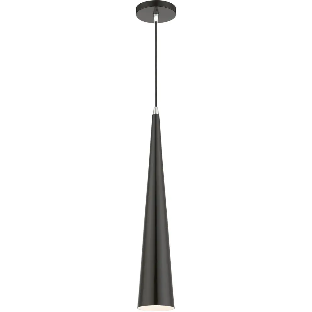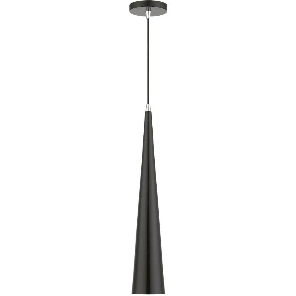 1 Light Shiny Black with Polished Chrome Accents Single Tall Pendant