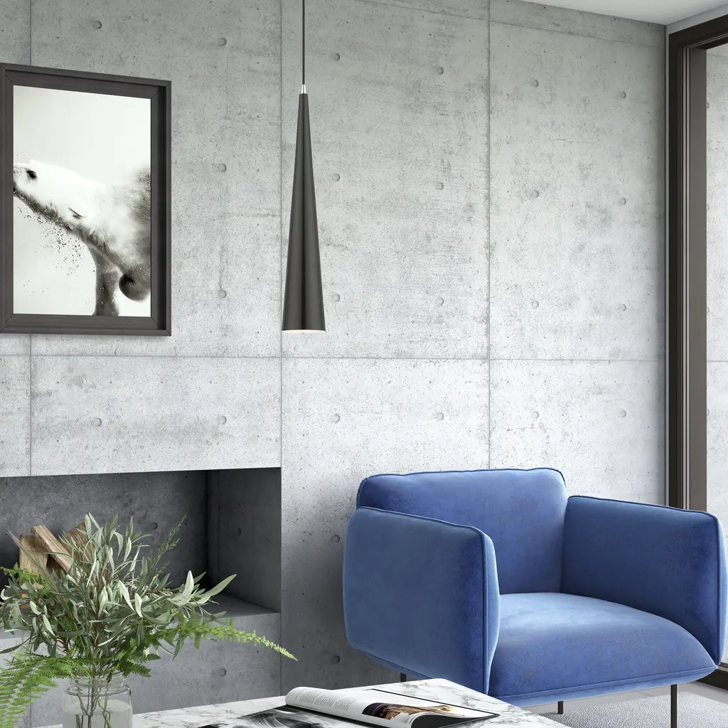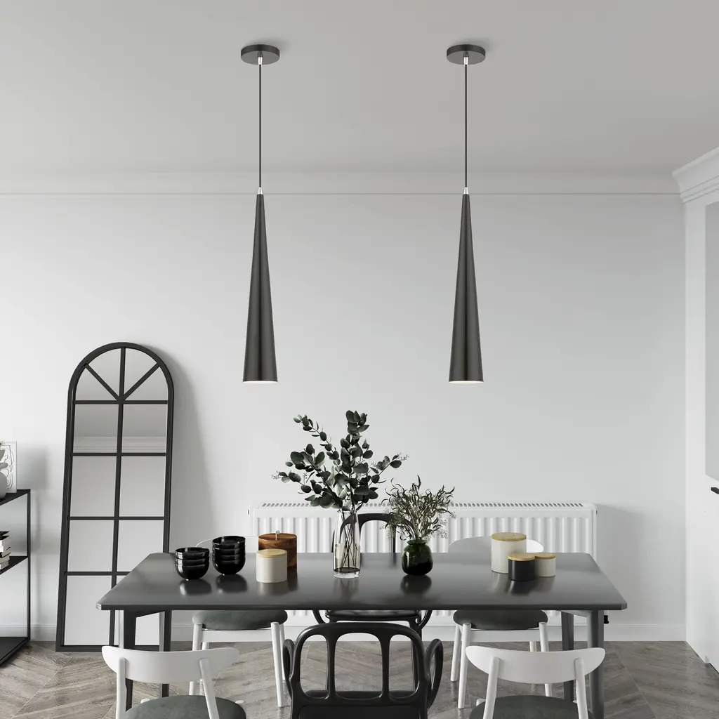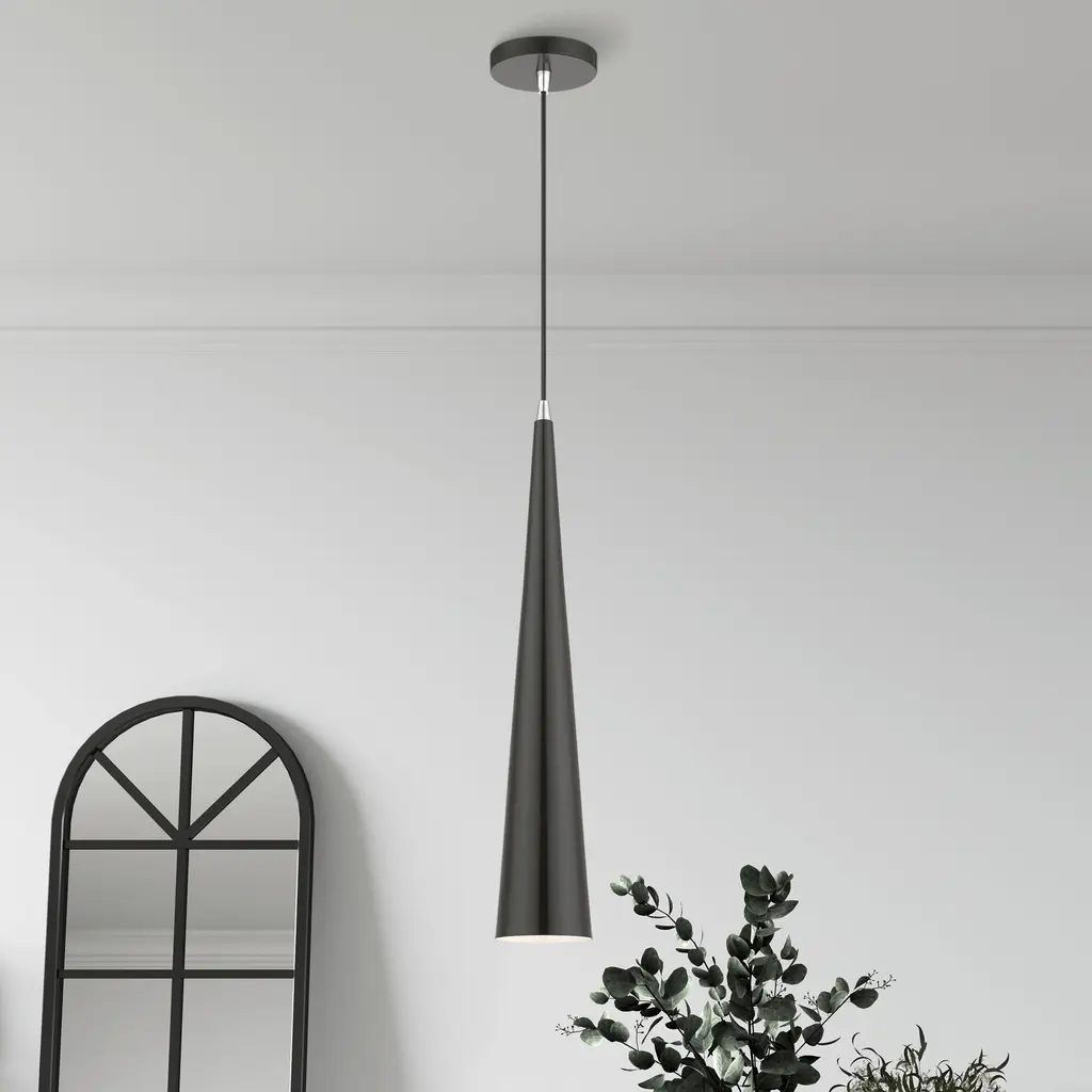 1 Light Shiny Black with Polished Chrome Accents Single Tall Pendant