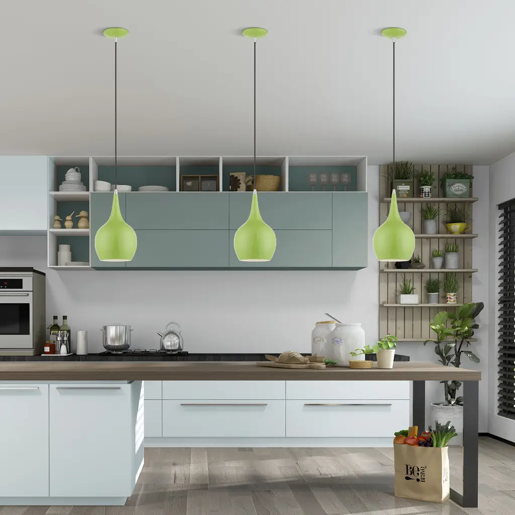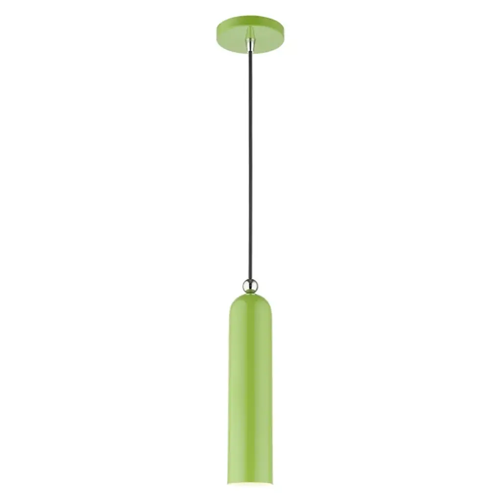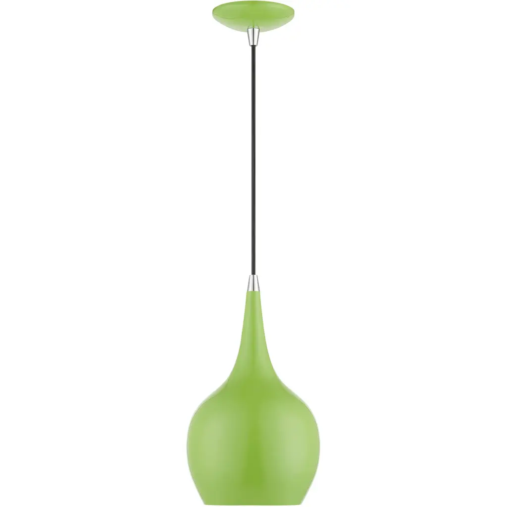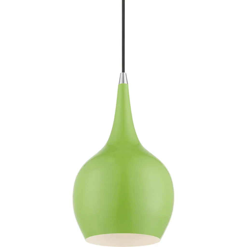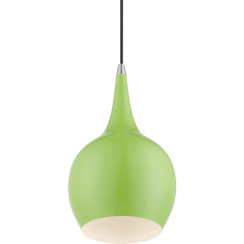 Andes 1 Light 8 Inch Shiny Apple Green With Polished Chrome Accents Mini Pendant Ceiling Light