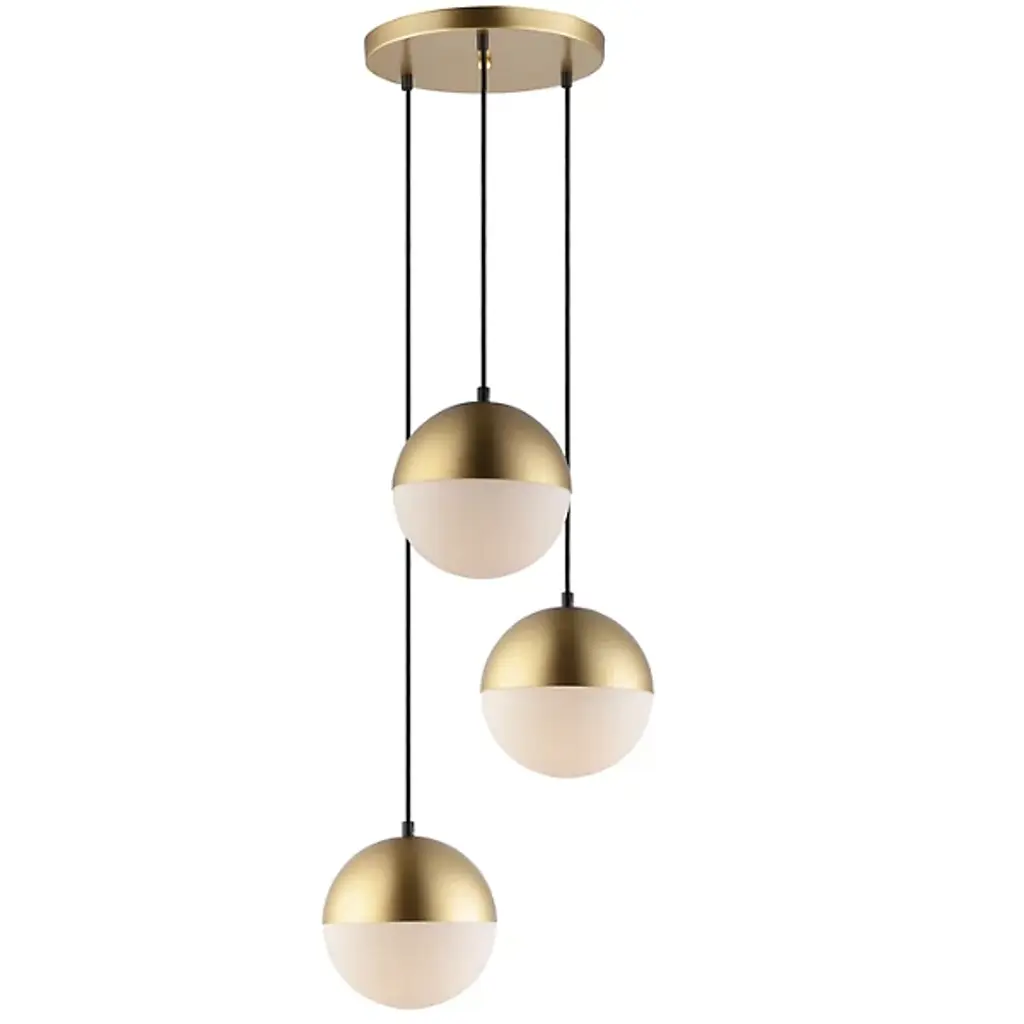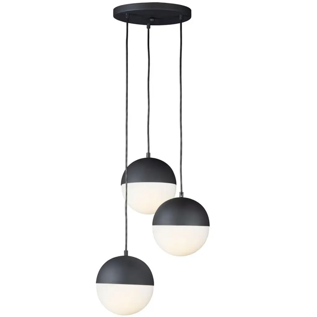 Bring a contrast of light and dark to your modern home with the Andrea Multi-Light Pendant from Huxe. Hanging from a rounded ceiling plate made of smooth metal and a single wire, each are a set of three globes, each precisely split in half with contrasting materials. The upper half is made of spun metal and the lower half of satin white glass. An integrated LED bulb is installed within each globe, illuminating the glass evenly and bringing them to life with a soft, wondrous glow.