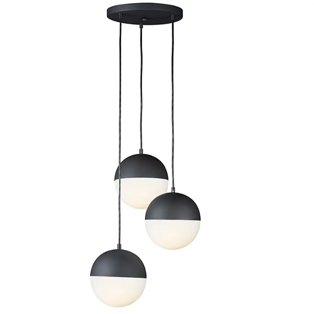 Bring a contrast of light and dark to your modern home with the Andrea Multi-Light Pendant from Huxe. Hanging from a rounded ceiling plate made of smooth metal and a single wire, each are a set of three globes, each precisely split in half with contrasting materials. The upper half is made of spun metal and the lower half of satin white glass. An integrated LED bulb is installed within each globe, illuminating the glass evenly and bringing them to life with a soft, wondrous glow.