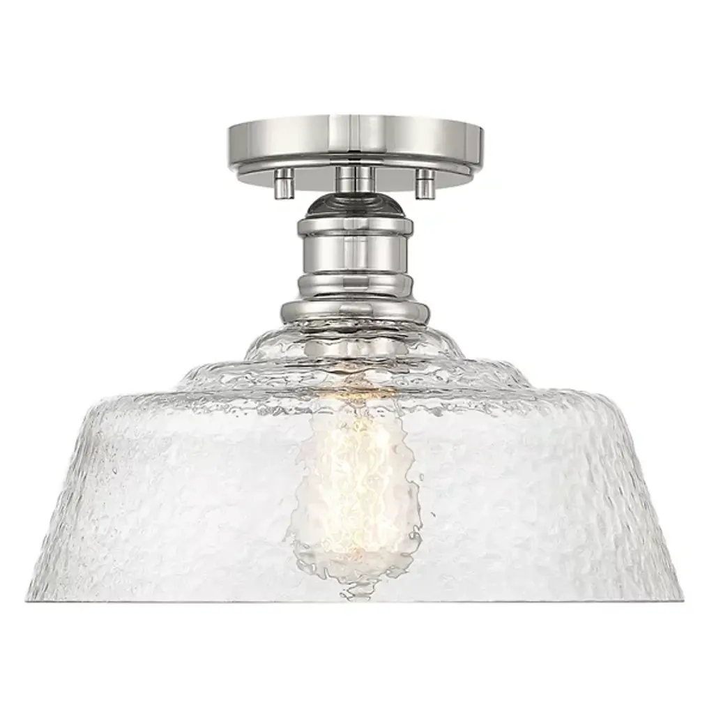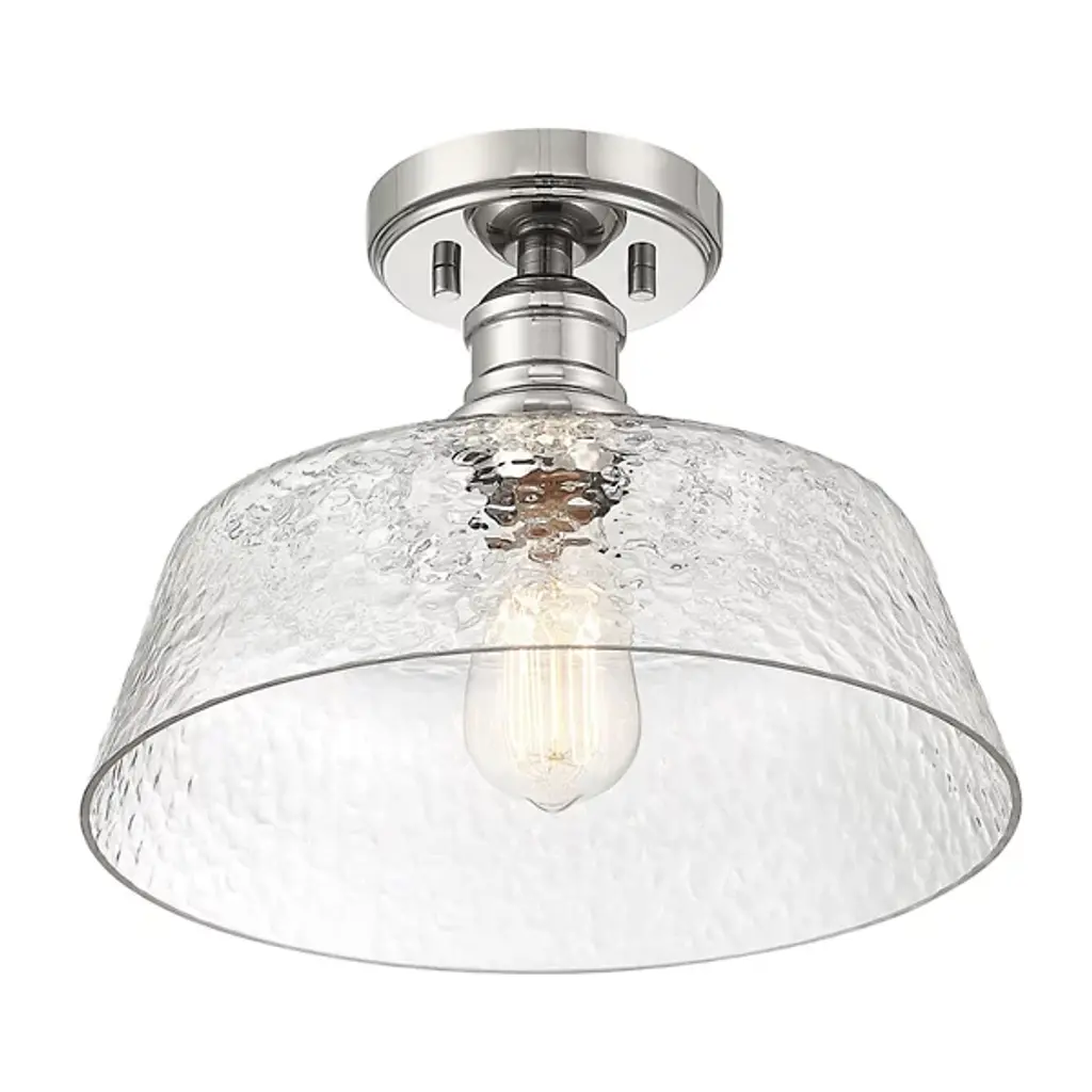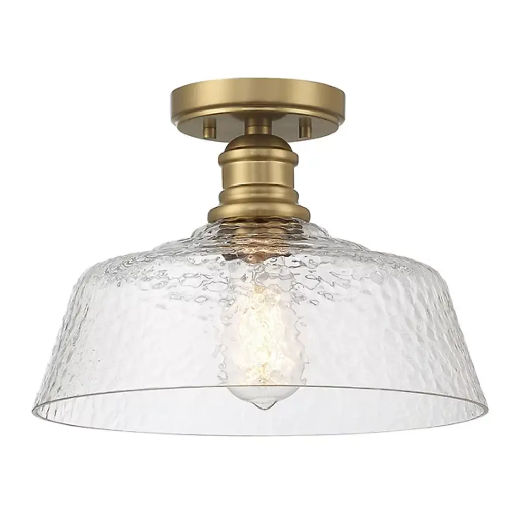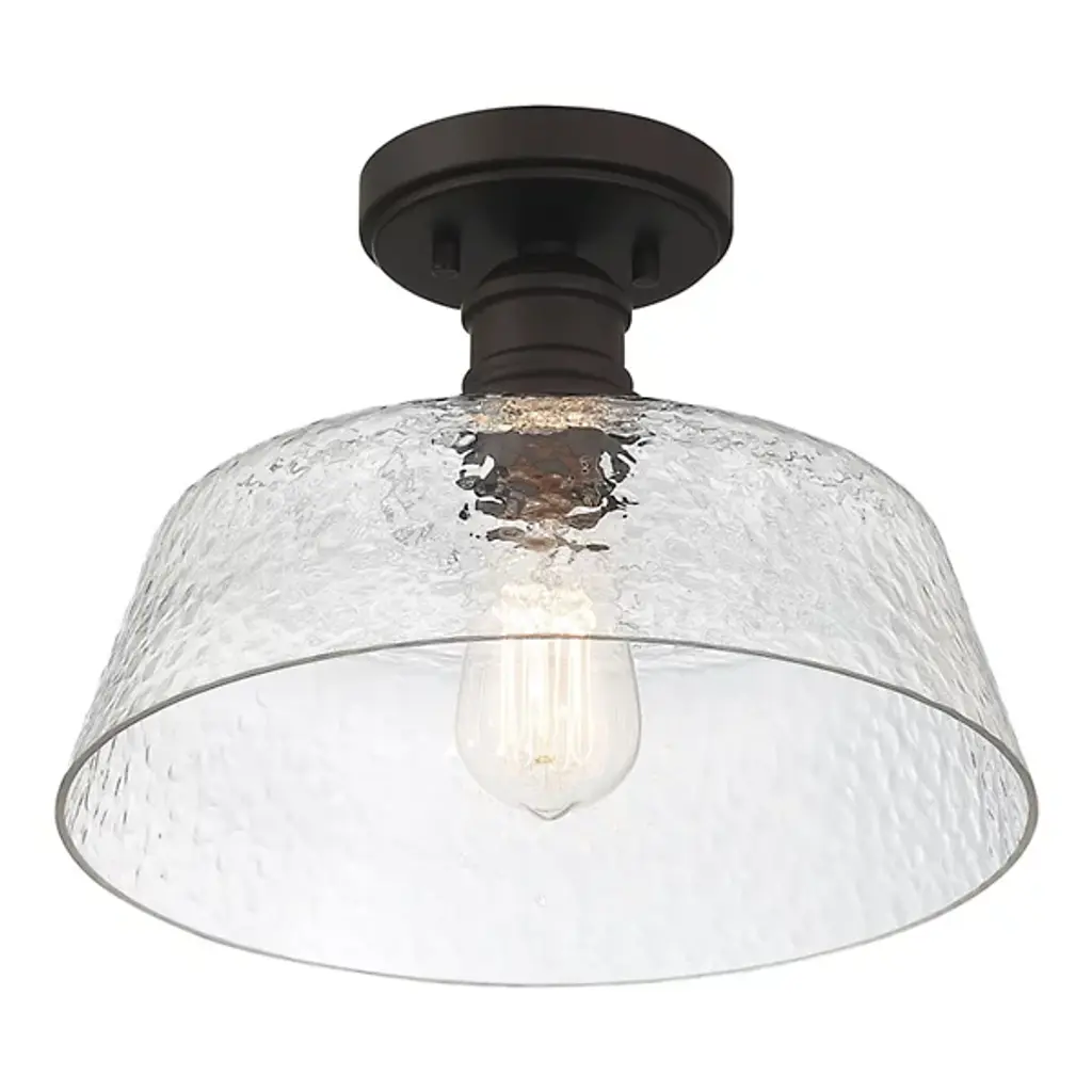 The Andrea Semi-Flushmount from Alder & Ore infuses your space with vintage industrial charm. Its textured glass shade adds character and visual interest, while the intricate detailing enhances its industrial appeal. This ceiling light combines rugged aesthetics with subtle elegance, perfect for creating a focal point in any room. Illuminate your space with a warm, inviting glow, and elevate your decor with a piece that seamlessly blends vintage flair with modern sophistication.
