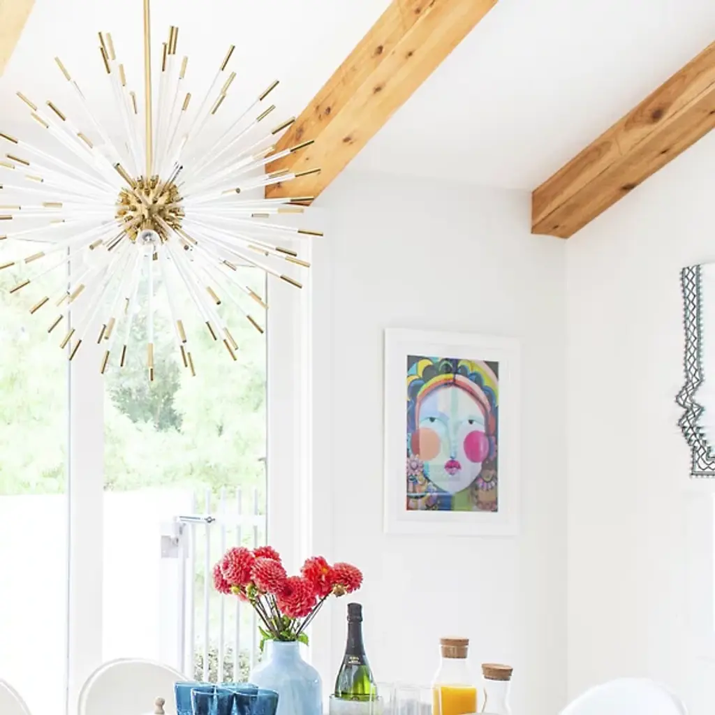 Dynamic and full of life, the Robert Abbey Andromeda Pendant is like a fresh burst of energy in the form of modern lighting. Dozens of clear acrylic rods extend from the central sphere, each tipped with matching metal caps. When lit, the illumination bounces from one rod to the next, creating a lit atmosphere with a creative flair.
