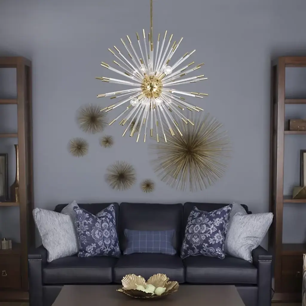 Dynamic and full of life, the Robert Abbey Andromeda Pendant is like a fresh burst of energy in the form of modern lighting. Dozens of clear acrylic rods extend from the central sphere, each tipped with matching metal caps. When lit, the illumination bounces from one rod to the next, creating a lit atmosphere with a creative flair.