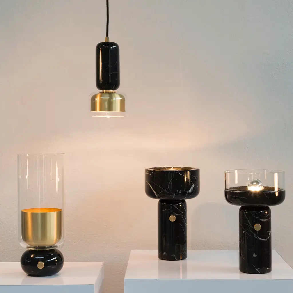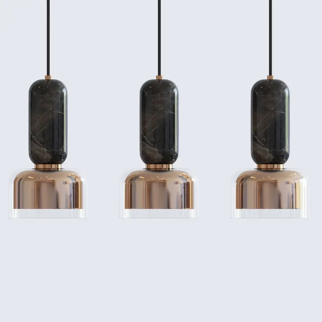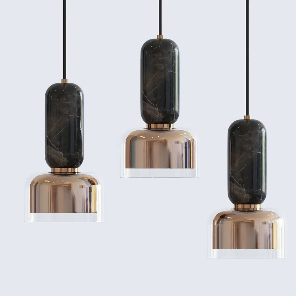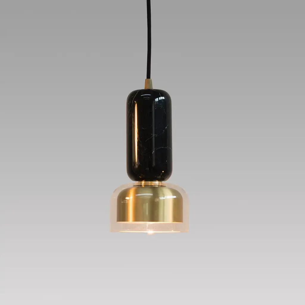 "Andromeda" Pendant Lamp In Black Marquinha Marble And Satin Brass