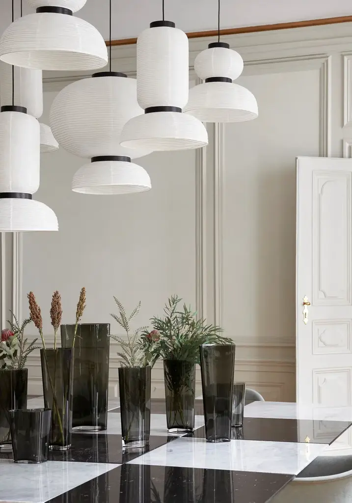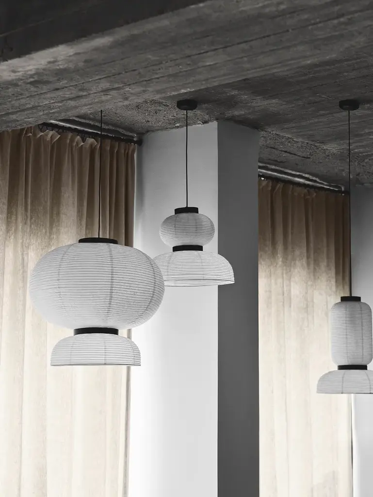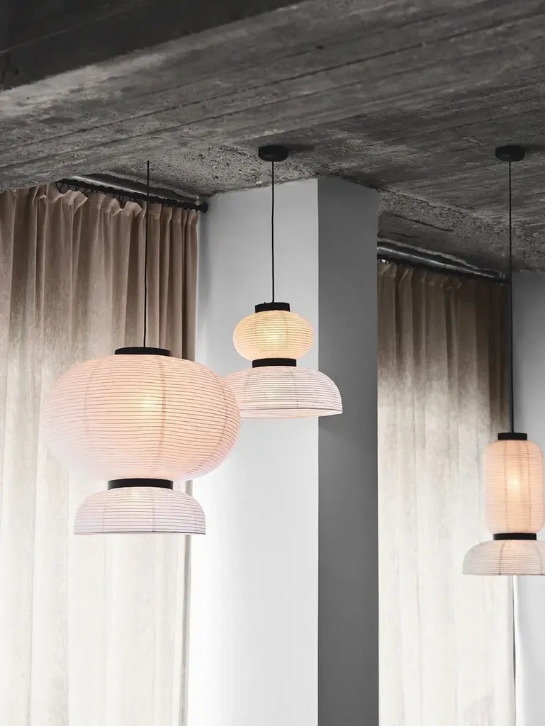 East meets West in Jaime Hayon’s playful tweak of a traditional Asian lantern in contemporary expression. Dating back centuries, paper lanterns have featured in Asia amongst the privileged and the poor, where different colours, shapes and sizes connote different meanings. Here Hayon has dispensed with cultural formalities to create a series of lamps all in white. Hand crafted with rice paper merging various sizes and shapes together with black stained oak accents.Production processHandmade rice paper pendantEnvironmentIndoorMaterialIvory white paper, black stained oak, 4 meter black fabric cordColoursIvory WhiteVoltage220-240V – 50HZLight source & energy efficiency class2 x E27 Max 60 WattThe luminaire is compatible with bulbs of energy class: A++ – EBulb is not included. Canopy includedCord length400cm/157.5inCertificationsCE, IP20, Class IICleaning instructionsClean with soft dry cloth. Always switch off electricity supply before cleaning