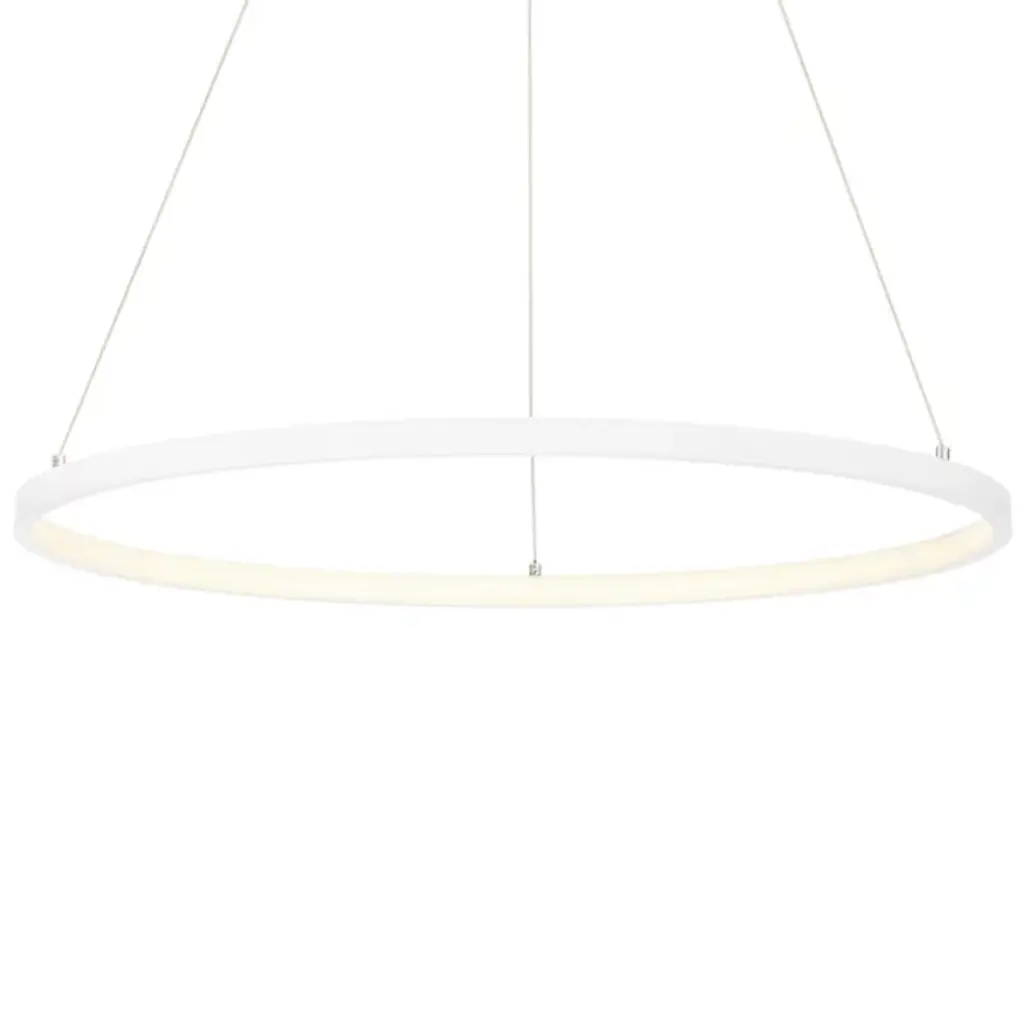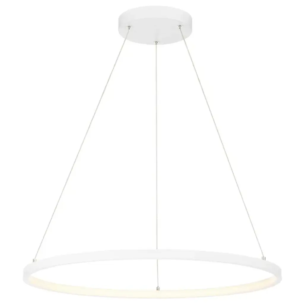 Experience superior style and classic elegance with the Anello LED Round Pendant by Access Lighting. This chandelier style round pendant hangs from cord and is crafted from steel and acrylic, offering energy-efficiency and a dimming function to meet all of your brightness needs. This modern ceiling pendant is suited to be hung above your kitchen island or dining table to complement your kitchen decor and to brighten up the room.