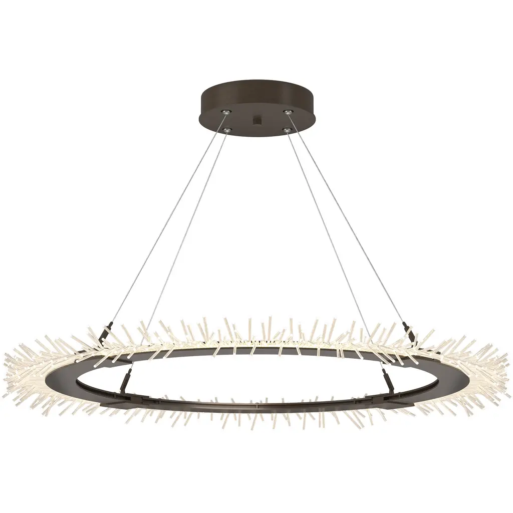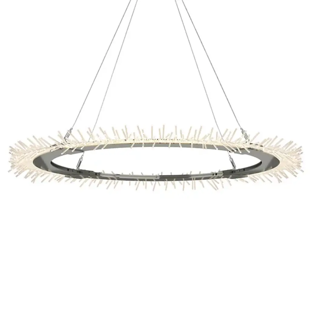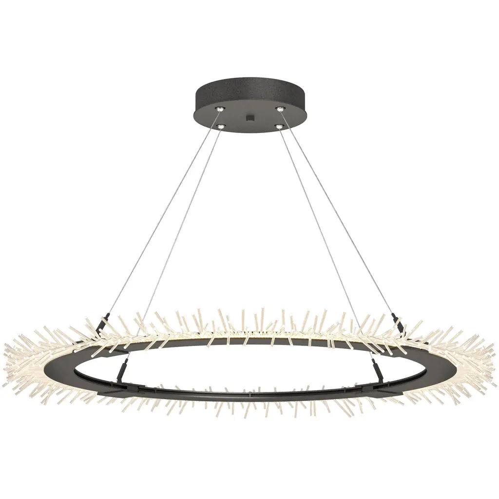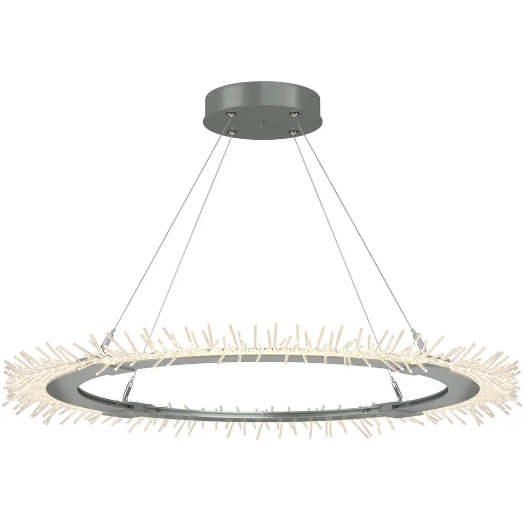 Make a splash with the Anemone Circular LED Pendant by Hubbardton Forge. Its unique design captures that distinct oceanic look by dressing a sleek metal ring in tendril-shaped acrylic accents. An integrated LED light source runs around the circumference, shining out through the tendrils for an alluring underwater effect.