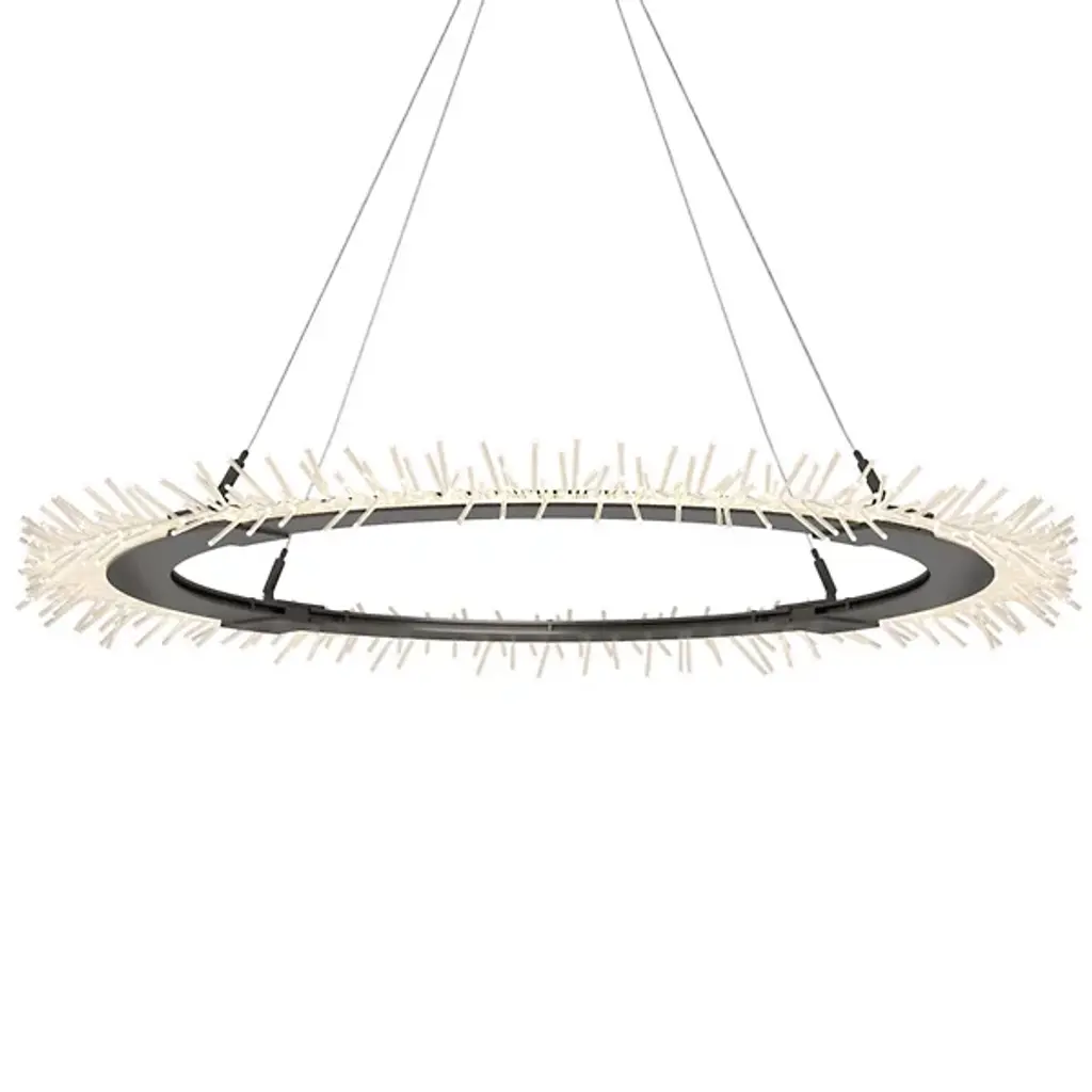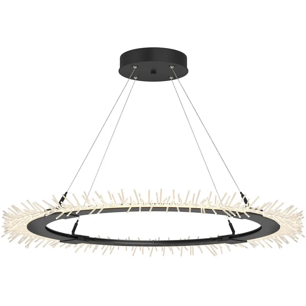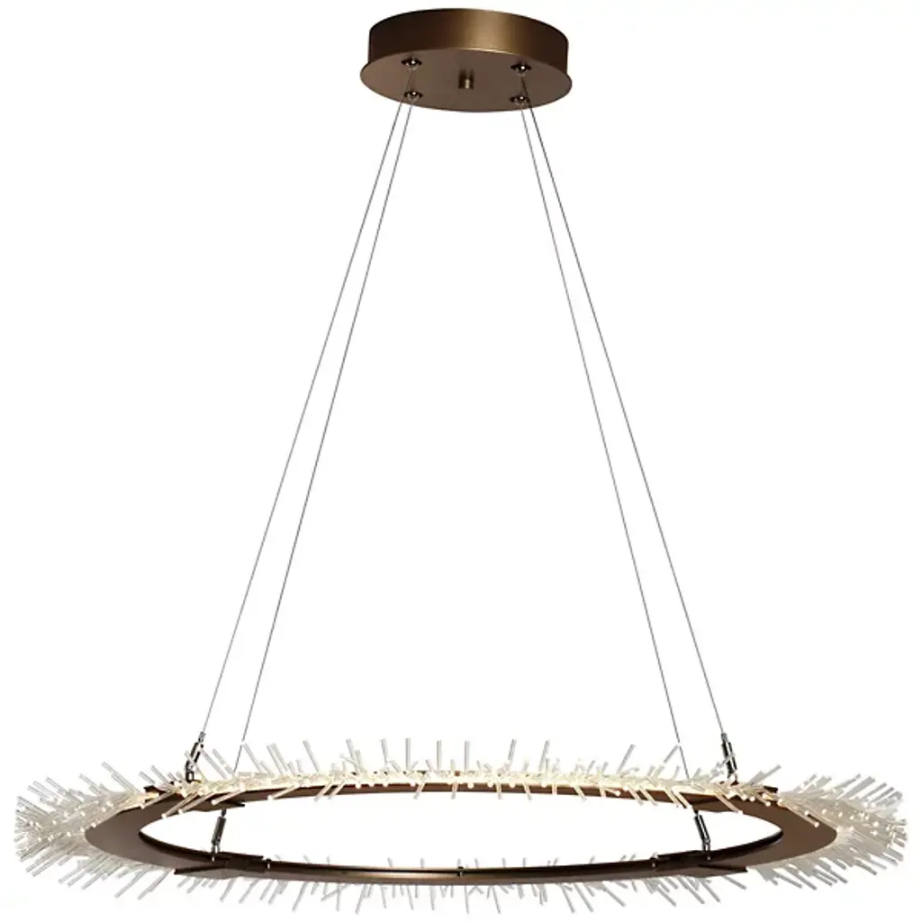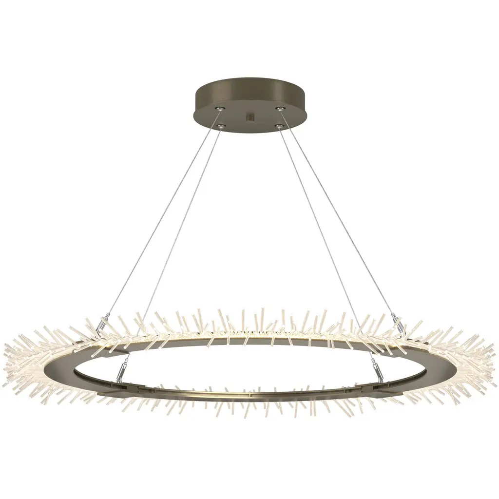 Make a splash with the Anemone Circular LED Pendant by Hubbardton Forge. Its unique design captures that distinct oceanic look by dressing a sleek metal ring in tendril-shaped acrylic accents. An integrated LED light source runs around the circumference, shining out through the tendrils for an alluring underwater effect.